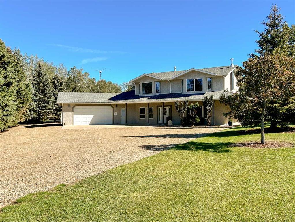 Experience the ultimate in comfort and style with this one owner, custom-built walkout bungalow, set on 1.32 park-like landscaped acres. There are two titled expansive lots. This beautifully maintained home combines the tranquility of acreage living with modern conveniences, located in the country, but within town limits. Offering 1,220 sq. ft. of main-floor living space, you’ll discover a stunning kitchen, extensively updated in 2013, with dark cabinetry, Corian countertops, and brand-new appliances (August 2024). Extensive updates also included new flooring throughout the home and completely renovated bathrooms. Step out onto the composite deck, complete with a power awning, where you can relax and enjoy serene views of the landscaped yard. The lower level provides an additional 1,200 sq. ft., featuring a laundry room, a cozy home office, and a living area with a wood-burning stove, complete with a convenient pass-through wood door. In-floor heating runs throughout the home, including the attached garage, which is a dream space with its epoxy floor and premier storage solutions. Notable updates include Gemstone exterior lighting, hail-resistant shingles with extensive warranty, new eaves and fascia (2023), and a recently installed pressure tank and industrial septic pump (2024). The home is also equipped with a comprehensive security system, featuring flood sensors, motion alarms in the outbuildings, and a driveway alarm for added peace of mind. Additional highlights include central air conditioning, a water filter/treatment system, natural gas lines to the deck and kitchen, fibre optic connectivity, and an air exchanger. Outside, you’ll find a garden shed with solar panels and a gazebo, ideal for unwinding in your private retreat. You will want to make this extraordinary, one of a kind property your forever home, offering a perfect blend of modern updates and peaceful country living! Pride of ownership shines through on this one. Location is prime on pavement, with easy access to the Highway 2 corridor, 30 minutes to Red Deer, 45 minutes to The Edmonton International airport, and 1 hour to Edmonton.