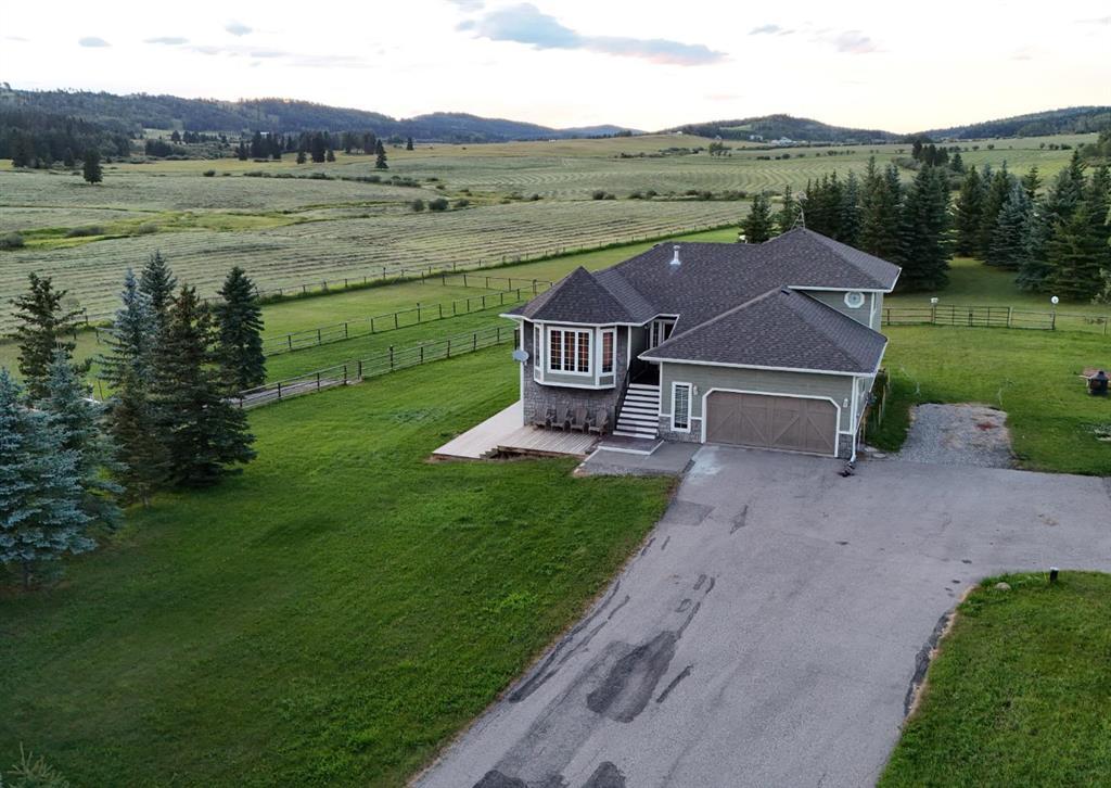 We’re proudly presenting this serene oasis in the sought-after Millarville area! This sprawling 8.77-acre property that boasts a total of 2,585 ft2, with a walkout basement and breathtaking panoramic views from the upper and lower decks. Enjoy peaceful walks on the forest trails, sitting beside or skating on the pond, and with little work to do, this property is fenced for your livestock. It comes with 2 large sheds and an insulated chicken coop wired for heat. With an oversized heated double garage and trailer parking, there's plenty of room for all your toys. The exterior of the home has had updates including updated Hardie Board, soffits, and cladding. The interior is very well kept with an array of updated appliances and big, beautiful windows allowing light to enter from all angles. The kitchen boasts access to the deck with more gorgeous views and the primary bedroom is huge, it also features a 4-pc ensuite as well as a big walk-in closet. The floorplan features good separation between the primary bedroom and the additional bedrooms so you can get the privacy you need. Don't miss this opportunity to build your dream shop or barn on this fantastic property. The well is high-yielding, and there's an added water filtration system and iron filter! We’re happy to accommodate your showings and answer any questions you may have. This area is close to the city but far enough away to enjoy true country living. You won’t find a better community with a mix of long-time ranching families, young families, and everything in between! Don't miss the chance to visit this one, you won't be dissapointed.
