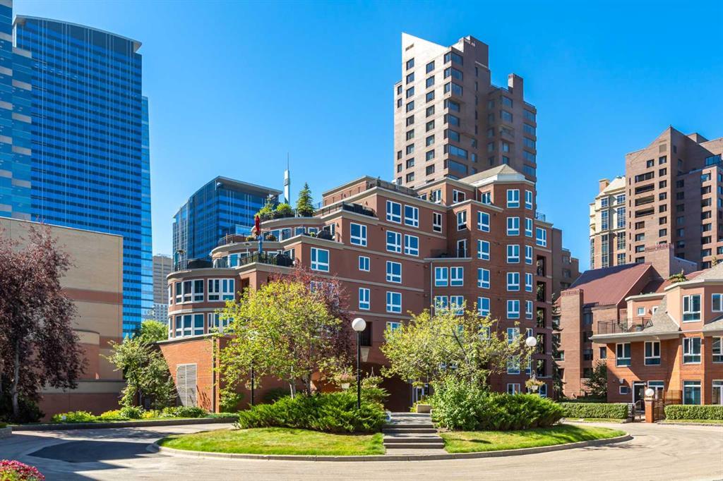 **Check out the VIDEO TOUR!!** An EXTRAORDINARY opportunity to own a completely reimagined MASTERPIECE in the prestigious Prince’s Island Estates, a premier address nestled in the heart of Eau Claire—Calgary’s most sought-after downtown neighborhood. This LUXURIOUS residence, fully transformed, seamlessly marries modern ELEGANCE with an expansive outdoor private terrace, offering a RARE chance to indulge in al fresco living amidst a condominium setting. With 1,162 sq. ft. of OPULENT living space, this executive 2-bedroom, 2-bathroom residence exudes contemporary refinement and comes equipped with LUXURY VINYL PLANK floors, custom automatic blinds and air conditioning for year-round comfort. The chef-inspired designer CUSTOM KITCHEN is a culinary dream, boasting a massive center island, exquisite quartz countertops, custom white shaker cabinetry, a deep farm sink, paneled high-end appliances including a wine fridge, an induction range, and color-changing LED under-cabinet lighting—PERFECT for both everyday enjoyment and entertaining. Retreat to the tranquil primary bedroom, where you'll find a spacious walk-in closet and a lavish 4-piece ensuite, featuring a gorgeous vanity sink and modern dual faucets, an oversized glass-enclosed shower and designer fixtures that evoke a spa-like AMBIANCE. Next to the main living area lies the entrance to the second bedroom, a versatile space offering endless possibilities. Whether utilized as a home office/gym or transformed into a welcoming guest retreat for visiting loved ones, this room embodies the essence of modern flexibility and convenience. The main bathroom in this residence has been fully renovated and outfitted with the finest material finishes, the space boasts polished quartz countertops, sleek custom cabinetry, and floor-to-ceiling designer tiles. The centerpiece is a deep soaking tub, perfect for unwinding after a long day, complemented by a rainfall showerhead for a TRULY indulgent experience. Unwind on the MASSIVE terrace or through your large panoramic windows, where breathtaking views of the Downtown skyline and Prince’s Island Park unfold before you. Steps away are the FINEST amenities, from park pathways, top-tier restaurants, and entertainment venues, Plus 15s, and annual cultural festivals. This STUNNING residence, with over $200K in meticulous renovations, is located within the secure, gated confines of Prince’s Island Estates—an EXECUTIVE luxury condominium complex featuring a serene courtyard. The building offers ample underground visitor parking, a car wash, bicycle storage, an onsite manager, and some of the LOWEST condo fees per square foot in the area—which includes ALL UTILITIES. Your new home includes TWO titled, heated underground parking spaces and an additional assigned storage unit. Notably, the unit is one of the few in the complex with its own air conditioning, ensuring ULTIMATE comfort throughout the year. INDULGE in a lifestyle of UNPARALLELED LUXURY—schedule your PRIVATE TOUR TODAY!!