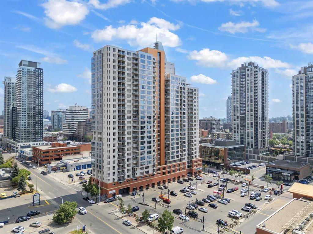 Welcome to Vantage Pointe, a premier condominium residence perfectly situated in the heart of Calgary’s vibrant Beltline district. Perched on the 16th floor, this stunning 2-bedroom, 2-bath CORNER UNIT impresses with expansive windows that flood the space with natural light from its desirable east and south exposures. The panoramic views of the downtown skyline are nothing short of breathtaking. The unit has been updated with a fresh coat of paint and brand-new vinyl flooring, perfectly complementing the sleek black appliances in the kitchen, and in suite laundry for your convenience. The master bedroom features a private 3-piece ensuite, offering a serene space to unwind. The generously sized second bedroom is ideally located adjacent to a 4-piece bathroom, providing comfort and privacy for guests or family members. The Vantage Pointe building elevates your living experience with amenities, including a fully equipped fitness center on the second floor, 24/7 concierge services, and the convenience of titled underground parking. To top it all off, your monthly condo fees cover all utilities—water, heat, and electricity—so you can enjoy a worry-free lifestyle. Located directly across from the Co-op and just steps from an array of trendy shops, gourmet restaurants, and the C-Train station, this is urban living at its finest. Don’t miss the opportunity to call this exceptional condo your new home. Book your private showing today!