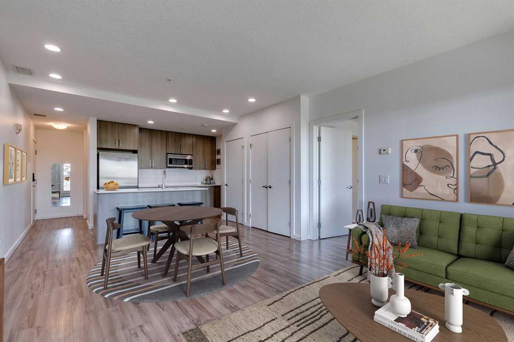 Welcome to Niche, an impressive “Built Green” project that is conveniently located minutes away from two C-Train stations, and a quick 10-minute drive to downtown, U of C, or Mount Royal University. This highly desirable location is surrounded by well-maintained homes, urban infills, and upcoming new developments, with close proximity to 17th Ave, Westbrook Mall (groceries and shopping), Public Library, Bow River Pathway, Edworthy Park, and Shaganappi Golf Course. This newer, low-rise condo offers quiet CONCRETE and STEEL construction, built-in fast Fiber Optics internet connection, spray foam insulated walls, and high efficiency geothermal heating (No baseboard heaters taking up valuable floor space) and COOLING for the warm summer days. This spacious 2 bed / 2 bath corner-unit is in pristine MOVE-IN READY condition and boasts many upgrades such as wide plank laminate flooring, Hunter Douglas blinds, quartz countertops, high-end stainless steel appliances and updated fixtures. The master bedroom includes a walk-in closet, and a spa-inspired en-suite with glass enclosed shower. The 2nd bedroom is great extra space for guests, a home office or both! The bright and open living area looks out to the 7' x 25' OVERSIZED east-facing balcony with downtown views. The building is equipped with elevator access and includes a secure underground heated parking stall. The environmentally focused and functional condo offers a great investment opportunity and comfortable urban living in the heart of Calgary!