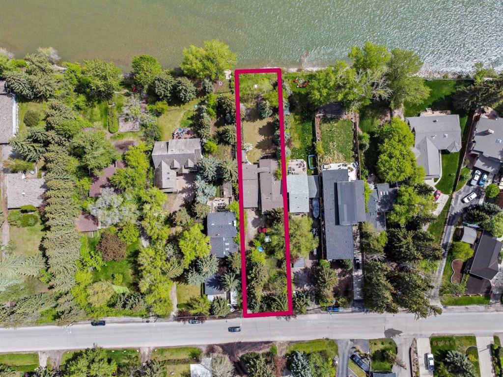 Welcome to a very rare and special property backing onto the banks of the Bow river!! Thinking of building your dream home or renovating an existing home, well...look no further! New to the market is a magnificent "One Of A Kind" property accentuated by the original 1943 log cabin converted into a spacious 1,558 sqft Bi-level, complete with a full height basement on a extra wide and mature treed 57 ft lot, offering over one third of an acre backing onto the high water mark of the Bow river!! The extra wide lot is a rarity on Bow Crescent and will accommodate the next generation of new executive homes to be built, similar to the several other custom built homes that are already located all along this gorgeous street. The rustic charm of this home is it is in need of TLC if you wish to rekindle the former ambience of a 1943 log cabin. The house has had several additions and remodeling over time, including a newer wood foundation, newer furnace and hot water tank. The main level is highlighted by a wide open floor plan offering lots of natural light and a real wood burning fireplace. The upper level addition includes a sitting room plus a workshop area, accentuated by gorgeous river and valley views, perfect for the landscape artist. The lower level is unfinished awaiting the next level of finishes. There is also a very large double 19x27ft double detached garage, plus lots of other onsite parking. The very private and heavily treed lot backs onto a secluded island across the river and not directly onto the other bank of the Bow, enhancing the privacy of this spectacular location. A rare find.... hurry on this one and start your building or renovating plans today!