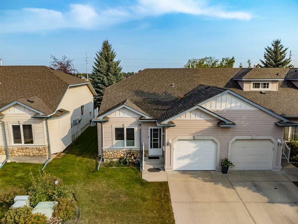 This beautifully upgraded villa in the 18+ Chaparral Pointe Adult Village features a single attached garage and radiates pride of ownership. The main floor boasts wood-grain Italian porcelain tile, an updated open-concept kitchen with ceiling heigh cabinetry, quartz countertops, a spacious island for casual dining and vaulted ceilings in the living room. Natural light pours in, with a glimpse of downtown visible through the rear windows. The primary bedroom on the main floor is spacious and includes his and hers closets. The ensuite bathroom has been renovated, complete with a step-in tub. Convenience is key with main floor laundry and a large den for additional living space. The fully finished basement includes a second bedroom with an included Murphy bed, a family room with adjoining recreation space, and a sizable storage or hobby room. The newer furnace is equipped with an air filtration system, ideal for those with allergies. You'll enjoy the single attached garage, as well as lake privileges, providing access to fishing, boating, swimming, and even ice skating in winter, just a short walk away.