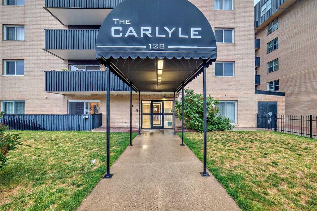 Welcome to the Carlyle, a Well-managed condo in Victoria Park. The suite is on the 5th floor of this concrete building and has an outstanding view of downtown. Everything you will need is a block away from Victoria Stampede Ctrain station, the Public Library, and the 17th Avenue entertainment district. Also, there are a few Public schools nearby walking distance and PET-friendly apartment. The interior has new paint and laminate flooring. Large storage near the entrance. Both bedrooms are Spaceful, one has a walk-in closet. The living room and master bedroom have views of Downtown lights and a large bright balcony. Parking spot with plug-in. Don't miss the opportunity to own this affordable home.