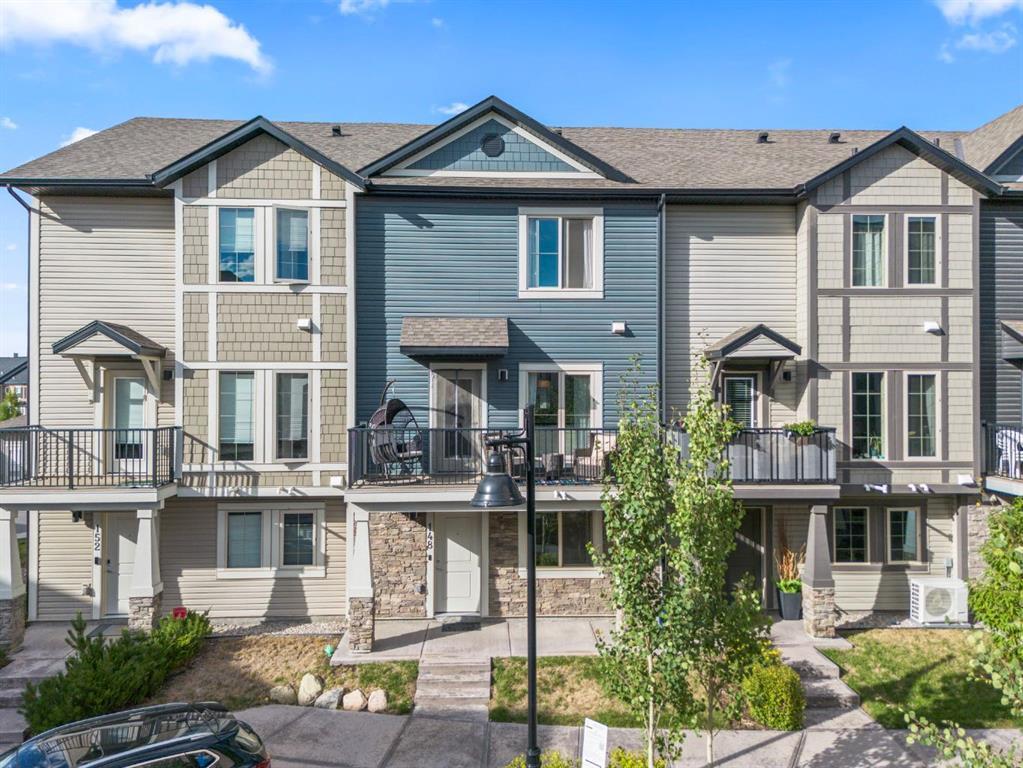 Beautifully maintained, this 3 bedroom, 1,722 sqft townhouse in the popular community of Legacy will be the perfect home for any buyer! As you enter you are greeted by a spacious foyer with a built in bench and storage and a convenient flex room which would be ideal as a home office or could easily cater to different family needs. On this level you'll also have access to the double attached and insulated garage with side by side parking and a driveway that fits another 2 vehicles (not all units in this complex offer extra driveway parking). The main level offers 9 ft ceilings and a fantastic open layout featuring an L shaped kitchen in the centre. Quartz countertops, stainless steel appliances, upgraded cabinets, island with seating and storage and pantry space are some of the features you'll enjoy. Both the dining and living areas have access to separate balconies (YES! TWO spacious balconies) with BBQ gas line! Truly a great space to host and entertain big gatherings. The laundry room with stacked washer and dryer is also located on this floor and a powder room with side window. Upstairs you'll find the large primary retreat with it's walk-in closet and 4-piece ensuite bath. Across the hall 2 more bedrooms and another full bathroom finish off this level. This home shows like new and checks off so many boxes. The complex is quiet and best of all it's located next to an environmental reserve and minutes to playgrounds, ponds, schools (2 min drive to All Saints High School), large shopping centres with all the shops and services you'd need (car wash, grocery stores, Winners, gyms, registry office, vet, salon/ spas, dental, clinic etc), transit, major roads and golf!