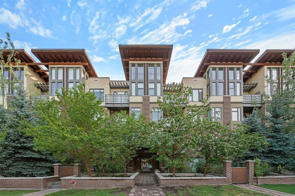 This stylish 2 bedroom, 2 bath condo is centrally located just steps from 17th Avenue! The open plan presents a living area with access to a private patio, dining area with feature wall & kitchen that’s tastefully finished with quartz counter tops, island/eating bar, plenty of storage, include wall of floor to ceiling built-in cabinets & a stainless steel appliance package. The primary bedroom has ample closet space & a private 5 piece ensuite. The second bedroom has double closets & direct access to a 3 piece bath also with laundry facilities. Further features include air conditioning, a private patio, 1 titled secured parking stall & an assigned storage locker. The central location can’t be beat – a half block to vibrant 17th Avenue shops & restaurants, public transit, schools, shopping, close to Bow River pathways & downtown. Immediate possession is available!