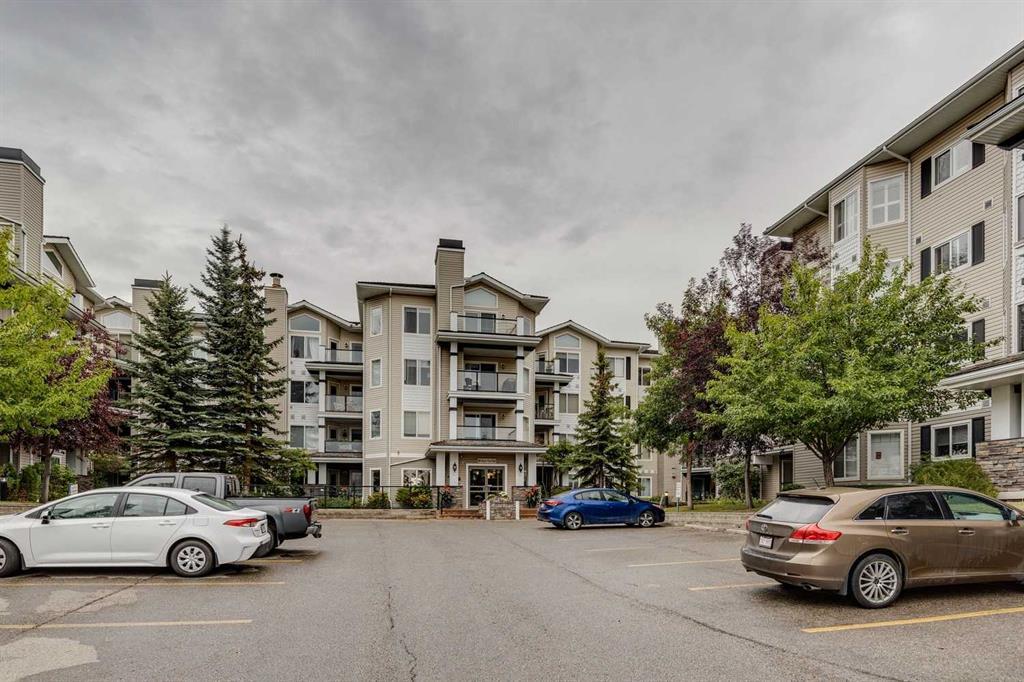 Best deal ever. Welcome to this 2-bedroom and 2-bathroom main floor unit at the Pavilions of Rocky Ridge. This condo is open plan with a bright kitchen and living room. The two large bedrooms are on either side of the unit -one with the spacious walk-in closet and three-piece ensuite. The other bedroom has a large closet and access to the adjacent four-piece bathroom. The unit has been well maintained and boasts fresh paint throughout. Being on the ground floor allows for easy access for the pet owner and no waiting for elevators. The underground heated parking stall is a good size and there is also a permit for the parallel parking outside. It is on a first come first served basis. Additional features include in-suite laundry, a large, covered patio w/ gas hook up and additional storage. As a resident of The Pavilions of Rocky Ridge you will have exclusive access to the Lake Club., where you can enjoy a range of amenities, including a well-equipped fitness gym, theatre room, game room and even a hair salon. Great access to shopping, the mountains and the LRT Station. Priced to sell. Live in yourself or ideal as an investment property.