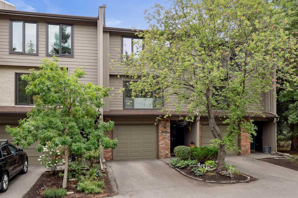 A rare find! Set on one of Point McKay’s most coveted streets, and with a mix of updated and original features, this townhome is absolutely lovely. Manicured gardens frame the front door, which opens to a large entryway with access to the single-attached garage. Up the stairs, the living room opens up with sky-high ceilings and stunning full-height windows that bring in views of the green belt and tons of sunshine from the south. The classic brick hearth features an upgraded gas fireplace, adding a cozy feel to this dynamic space. Sliding glass doors step out to a beautiful deck that feels like a private oasis. The next level begins with a dining area, where open railings create a sense of connection between stories and allow the natural light to flow throughout the home. In the kitchen, oak cabinets showcase the quality of the craftsmanship, and you could easily add your style to this room. Upgraded lighting and top-down bottom-up blinds give the breakfast nook a sophisticated aesthetic you will love with your morning coffee. There is a large pantry and laundry area here, and just around the corner, a powder room as well. The top floor features a massive primary suite with big, bright windows and a full ensuite. Two secondary bedrooms on this story have updated flooring and large windows, and the main bathroom is well-appointed, with some charming original elements preserved. Downstairs, the lower level is developed as a den, which could easily function as guest quarters, a home gym – there is a shower here – or office space. Outside, the secluded deck is surrounded by privacy hedges and towering mature trees. It faces south directly onto a quiet corner of the green space, with unobstructed access to the local tennis courts and the river. The Bow River Pathway offers hours of enjoyment, you can easily walk to Edworthy Park or cycle into downtown if you like. Riverside Club is just down the street, as are a number of local favourite eateries like LICS Ice Cream, Nove Nine Diner, and the Lazy Loaf and Kettle. The Foothills Hospital and the Alberta Children’s Hospital are both nearby, making this a popular area for healthcare providers. You can commute by car to downtown in about 10 minutes, or just slightly longer by bike. Or you can escape to the mountains quickly thanks to proximity to Highway 1. This area is one of the most desirable in Calgary because it truly has it all. See this one today!