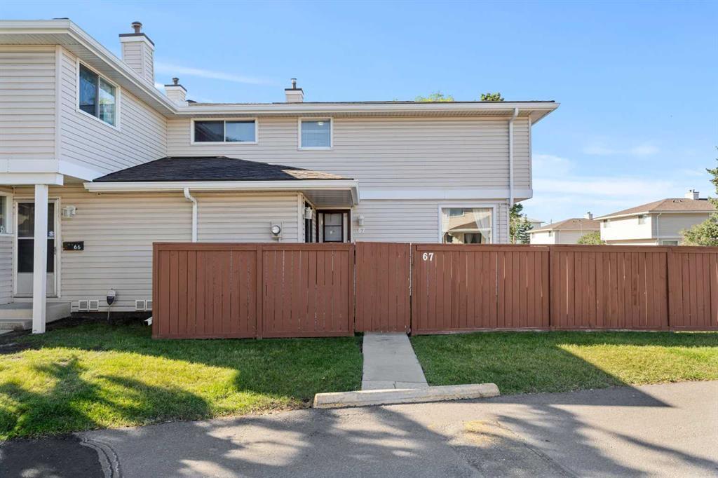 PRIME LOCATION!! This end-unit offers nearly 1,800 sq. ft. of easy living space, making it an excellent choice for first-time buyers or investors with LOW CONDO FEES & a PRIVATE BACKYARD. Enter through the welcoming foyer into a good-sized living area. The kitchen boasts updated appliances & a large pantry, creating a bright & cheerful space for cooking & meal prep… next to the kitchen, a flexible room can be used as a dining area or a second family room, with sliding doors that lead to a deck & a fully fenced yard —ideal for summer enjoyment. Upstairs, you'll discover 2 generously sized bedrms and a well-appointed 4-piece bath. The unfinished basement provides a large, flexible space ready for your personal touch—it could easily become a TV room, game room, workout area, or even a 3rd bedroom due to the lg basement window creating a bright laundry area with additional storage. Recent updates include a new hot water tank (2024) and a new furnace (2019). Parking is convenient with an assigned stall right outside your unit.** an additional stall is available for $20/month. This well-maintained complex features visitor parking & a private playground. Plus, you'll be minutes from schools, the Genesis Centre, Don Hartman Sportsplex, the LRT, Stoney Trail & a lg shopping plaza just steps away. Don't miss out on this fantastic opportunity—schedule your viewing today!