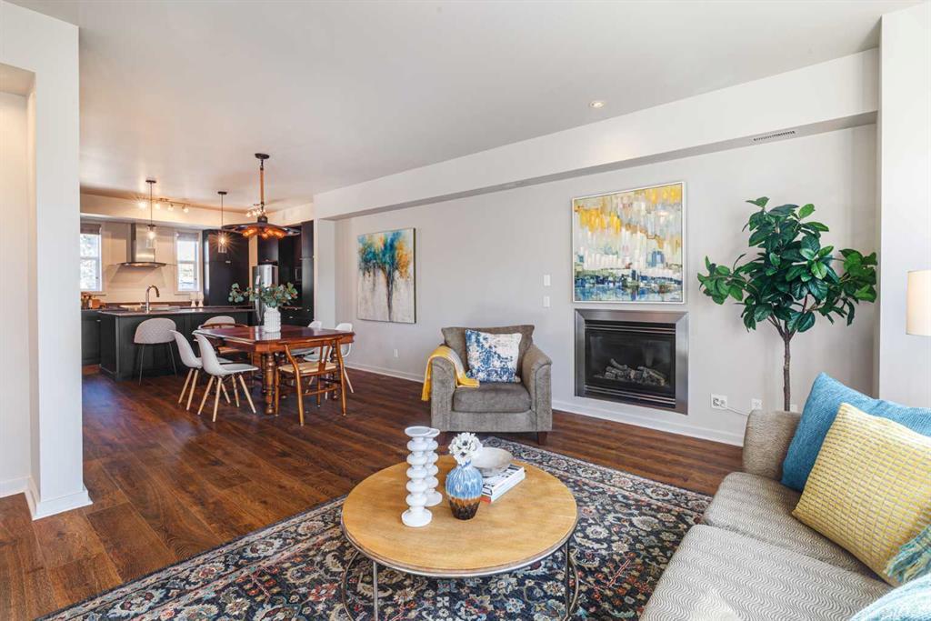 Welcome to this exceptional two-storey townhome, ideally located in the heart of Calgary’s vibrant Marda Loop. This beautifully designed residence features a bright and inviting open-concept layout, with soaring ceilings, large windows, and balconies on both levels, flooding the home with natural light. The gourmet kitchen is equipped with an oversized island, breakfast bar, induction stove, loads of counter, cupboard and drawer space. It flows seamlessly into the dining and living areas, anchored by a cozy gas fireplace, creating a perfect space for entertaining or unwinding after a long day. Upstairs, you’ll find two large primary bedrooms, each with its own 4-pc ensuite, a flexible family room - illuminated by a skylight - which can double as a bright office/den providing a perfect work-from-home space. Part of an exclusive four-unit, self-managed complex with great neighbours, this home also offers a shared, insulated, secure garage and low condo fees. Nestled in the dynamic, walkable Marda Loop neighborhood, this home is steps away from boutique shops, trendy cafes, lively pubs, great restaurants, and serene parks. Combining modern elegance with the convenience of urban living, this townhome is truly a rare find in one of Calgary’s most dynamic communities.