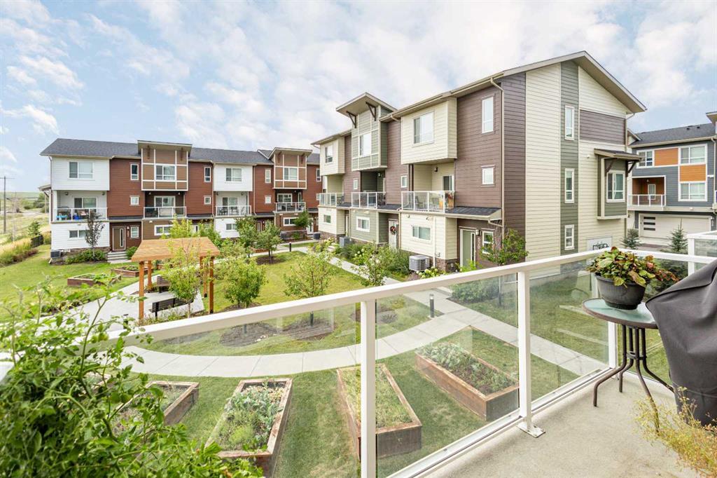 OPEN HOUSE 1-3pm Sat Sep 21. Built by “Builder of Choice” winner Cedarglen Living, this beautiful and functional three-bedroom townhome is located in the desirable community of Harvest Hills. Sunny south facing balcony overlooks a tranquil courtyard with apple trees, lush green spaces, bike and walking paths. Walking into the spacious foyer, easy access to the garage and laundry room. The main floor offers an open concept with spacious living room and bright dining area, covered with durable luxury vinyl plank flooring. The large windows and 9' ceilings provide plenty of natural sunlight. Modern kitchen has a great layout with quartz island, stainless steel appliances and lots of storage space. The upper level boasts a master suite with a walk-in closet and 3-piece ensuite, two additional bedrooms and 4-piece bathroom. Quick access to both Stoney trail and Deerfoot. Close to public transit, shopping, entertainment, parks, schools.