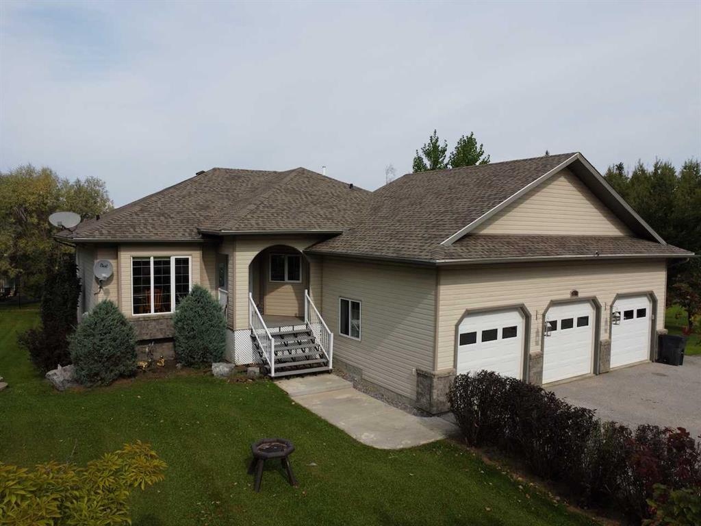 Is this the one you've been waiting for? A stunning bungalow nestled in the prestigious Gloryland Estates of Slave Lake. Built in 2006 and impeccably cared for, this two-owner home offers over 3000 sqft of living space with 5 bedrooms, 3 bathrooms, and a heated triple-car garage boasting 13-foot ceilings! Situated on a fully landscaped 0.53-acre lot with underground sprinklers and RV hookups, it provides a serene escape, far removed from the railroad tracks. Step inside to a spacious entryway leading to a separate boot room/laundry area with direct access to the garage. The open-concept kitchen and living room feature gorgeous tile and hardwood floors. The kitchen, perfect for entertaining, has a large island with barstool seating and ample cabinet space. The dining area opens onto a deck overlooking the beautifully landscaped backyard. The primary bedroom comes with a generous walk-in closet and a luxurious 5-piece ensuite with double sinks. Upstairs, you'll also find two well-sized bedrooms that share a 4-piece bathroom. The fully finished walk-out basement, with its 10-foot ceilings, offers plenty of space, including two additional bedrooms, another 4-piece bathroom, and a large recreation/entertainment area with access to the backyard. A brand-new HVAC system was recently installed, including in-floor heating throughout the basement and garage. With so many extra features, this home is a rare gem in one of Slave Lake's most sought-after neighbourhoods—it's a must-see!