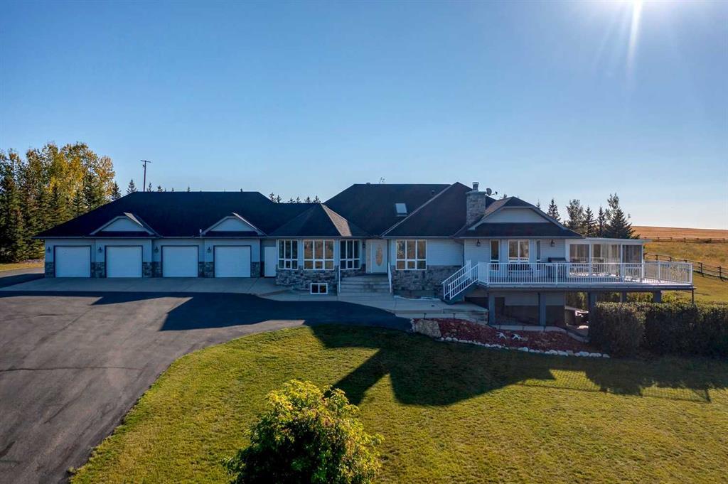 This stunning walkout bungalow is situated on a picturesque 3-acre parcel just 10 minutes from Okotoks and features the best legal secondary suites I’ve ever seen. The home's prime location provides breathtaking mountain views from nearly every room. The main floor boasts an elegant and spacious layout with 9' knockdown ceilings, hardwood flooring, and an abundance of windows that flood the space with natural light. There are three bedrooms upstairs, including a luxurious master suite with a walk-in closet and ensuite bathroom. The kitchen is equipped with solid wood cabinets, granite counters, and brand new stainless-steel appliances. The kitchen area is complemented by an adjacent living space with a gas fireplace, and a large eating area. Outdoor living consists of a covered deck or sunroom off the kitchen, and a large west-facing front deck that captures the sun and offers more stunning views. There is also a formal living room and dining room for entertaining, plus a convenient main floor laundry. Downstairs in the impressive walkout basement is a wonderful legal secondary suite which provides versatile living options. There is a spacious rec room that can be incorporated into the main floor living area or used as an additional bedroom (window must be enlarged to be a bedroom) for the secondary suite. The legal basement suite has a separate entrance, hardwood flooring, a full kitchen with ample counter space and storage, a dining area, living room, and outdoor patio. The property's outdoor spaces and additional features make it truly exceptional. The 3-acre lot is adorned with beautiful trees and wonderfully manicured. There is a massive 54' x 29' heated attached garage, and an additional double detached hobby garage, along with a paved driveway with ample guest parking. This well maintained walkout bungalow is perfect for anyone looking to move to the country.