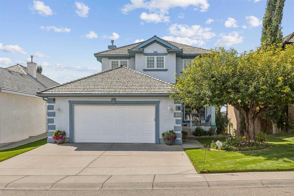 Welcome to this immaculately kept 4 bedroom home with walkout basement located on a wonderful pie-shaped lot with superb landscaping & expansive views of the Country Hills Golf course. Pride of ownership shows throughout with many updates over the years. The main floor is perfect for entertaining as you enter into the LR/DR area(hardwood floors) from the foyer & cozy front porch. The rear of the home is flooded with natural light, pouring through the wall to wall windows & the impressive view can be enjoyed from the kitchen, family room (gas fireplace) & substantial eating nook. The large, well appointed kitchen contains a center island & eating bar as well as a walk-in pantry, updated tiled floors, granite countertops & under cabinet lighting (stove & microwave new in 2022). The eating nook opens to a huge deck, with power awning & BBque gas line-perfect for your outdoor enjoyment. The main floor is complete with a 2 piece powder room & laundry /mud room with sink, upper cabinets & tiled flooring which leads to the oversized double garage (new garage opener in 2022). The upper floor boasts 4 bedrooms. The front 3 having large closets with built-in shelving. These bedrooms share an updated (2019) 5 piece bath with quartz countertops & tiled floors. The upper floor is highlighted by the huge primary suite including the renovated (2019) 5 piece ensuite with separate glass shower & luxurious soaker tub as well as the unbelievable walk-in closet. The walk out basement opens to a shaded patio where one can enjoy the beautiful view & back yard. This lower level is finished with a media area, containing built-ins & a hobby area with extensive cabinetry, counters & work space (vinyl flooring throughout). The back workshop space & mechanical room with plenty of storage & RI plumbing is awaiting your finishing touch. Other attributes of this home include an outdoor sprinkler system, outdoor GOBRITE lights, many upgraded windows, furnace replaced in 2022 & ongoing maintenance of the shake roof by Shake experts with a five year warranty. This home is impeccable & you will be impressed when you come to view it!