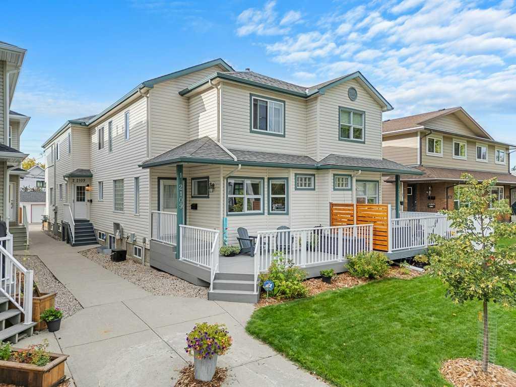 Inner city living at its finest! Welcome to this 3 bedroom above grade townhome with a fully developed basement, your own parking spot in the detached garage and South facing rear deck in the vibrant community of West Hillhurst. Stroll along the treed lined streets, surrounded by parks, paths, commercial amenities with transit close by to access downtown by bus, car or bike. Located on the backside of the 4 plex enter into painted ceilings wrapped in upper crown molding a tiled front foyer and 2-piece bath. Original hardwood floors stretch throughout the main level from the side kitchen boasting a plethora of classic white cabinetry, newer slide in stove and Bosch dishwasher and plenty of prep space. Entertain with ease off the dining area and step down into the full width lifestyle room complete with a focal corner gas fireplace a full wall of windows and a dual patio swing door to your sunny outdoor deck with a front and back phantom screen. The upper plan has room for all with 2 kids or guest bedrooms a rear primary suite home to a 5-piece en-suite/upper bath with a skylight, his and her sinks, separate shower and a room large enough for a king size bed and added bedroom furniture. The fully developed basement offers added storage space in the utility room, the home's full-size laundry set with a newer dryer central recreation room a 2nd full 4-piece bath and flex room with a generous size walk in storage closet. All this in a well-managed building presents the lifestyle, home and plan suited for today's modern professional.
