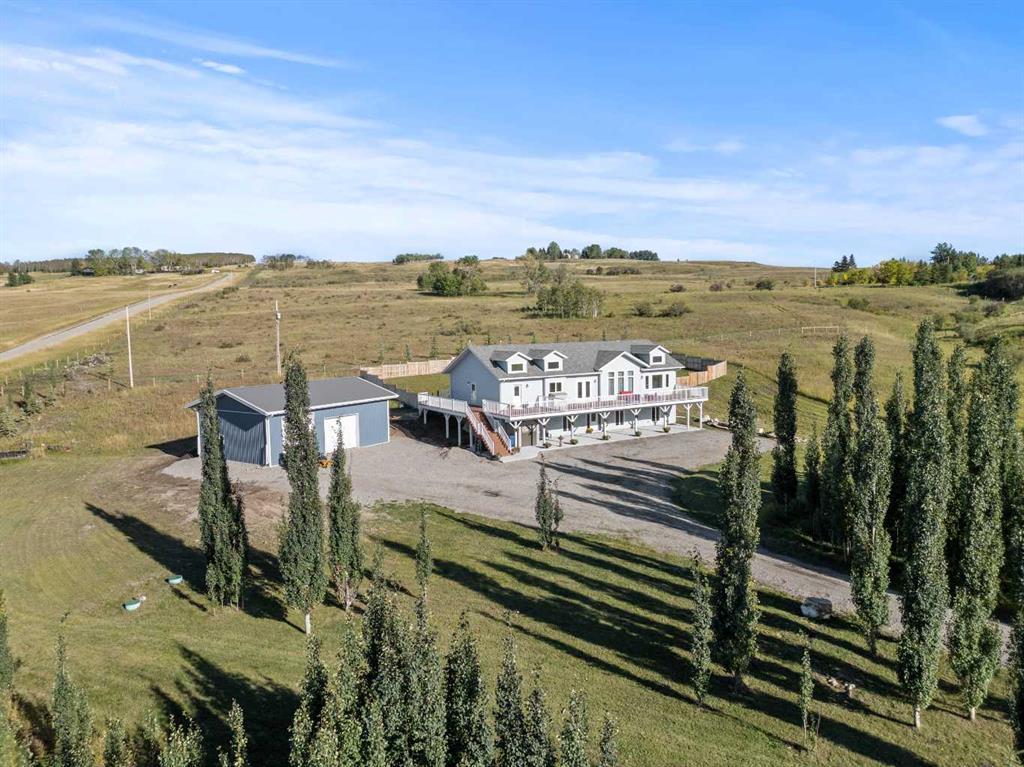 OPEN HOUSE SATURDAY SEPT 28, 12:30- 4pm.This sounds like an incredible property! Great curb appeal from this raised bungalow style, with its high ceilings and open concept, creates a spacious and airy atmosphere. The modern kitchen with upscale stainless appliances (Bosch Dishwasher, Induction stovetop and convection oven plus lower warming oven) and quartz countertop on the island, along with the large walk-in pantry, must be perfect for someone who enjoys cooking and entertaining. The expansive windows offers stunning mountain views to the west making the great room a wonderful area to relax in. French door leads out to an oversized deck ideal for all your family gatherings outside. Over 4,000 sq. ft. of developed space provides plenty of room for a growing family or hosting guests, and the primary suite with a spa-like ensuite and large walk-in closet is so luxurious. The additional 2 bedrooms and thoughtfully planned lower level, complete with an expansive rec room complete with wet bar, media room, another 2 additional bedrooms, one with an ensuite, and plus guest bathroom offer even more living space and convenience. The ICF foundation is a great feature too, providing enhanced insulation and lowering energy costs. And the 30' x 40' newly built metal shop/garage sounds like a dream for anyone who needs ample storage or workspace for vehicles and projects. It’s definitely a beautifully designed property with a great balance between luxury, functionality, and natural beauty. Are you considering making a move? This wonderful well planned home and property are well worth viewing !