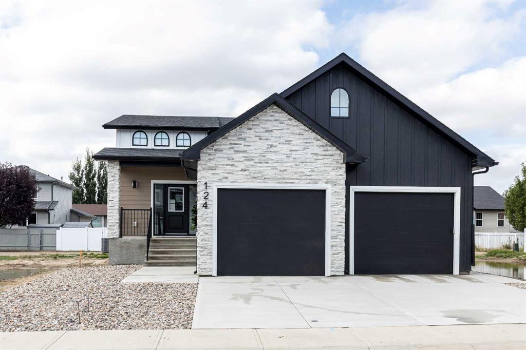 Just reduced by $20,000. Ready for immediate possession is this custom-built bungalow at 124 Hamptons Crescent in the desirable Hamptons community. This home offers 2,336 sq ft of total living area, with 1,367 sq ft on the main floor and an additional 979 sq ft on the lower level. The home features 4 bedrooms, with the primary suite on the main floor showcasing 12' vaulted ceilings, and 3 additional bedrooms on the lower level. This home also features 2.5 bathrooms. It offers 9' ceilings on both levels, vaulted areas up to 12', and a spacious 682 sq ft two-car garage. Enjoy outdoor living on the 172 sq ft covered deck, complete with a gas line for your BBQ. The exterior is finished with durable Hardie board and stone, accented by triple-pane windows. Inside, the living room features an elegant electric fireplace, and the kitchen boasts custom maple cabinets, quartz countertops, and a sil-granite sink. The luxurious primary suite also includes a walk-in tile shower, freestanding tub, and dual undermount sinks. This home includes driveway and front landscaping. Located in a sought-after Hamptons community, this home is conveniently near all amenities and schools. The home also comes with a 1-year in-house warranty and a 10-year National Home Warranty. Don’t miss your chance to own this stunning home in one of Medicine Hat’s top communities.