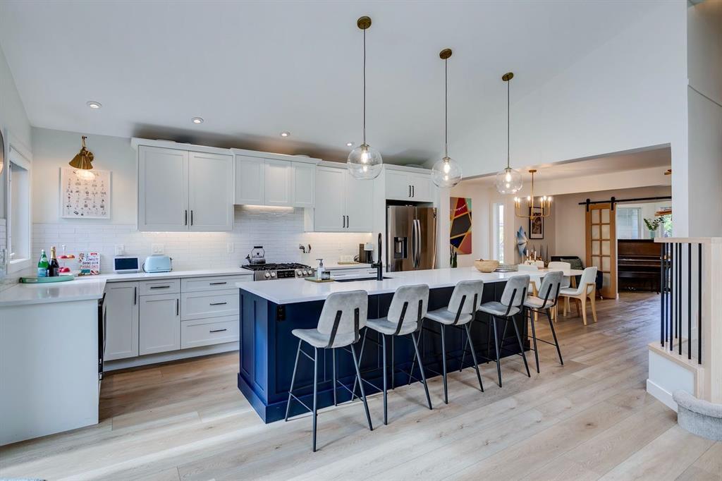 RARE FULLY RENOVATED WALKOUT home in the desirable LAKE COMMUNITY of McKenzie Lake! The interior of this home has so much WOW factor and style rarely seen in this age of home with VAULTED CEILINGS and an open-concept floor plan with a DREAM KITCHEN! This is the ultimate lifestyle with 4-season activities at one of the best private lakes in Calgary while being just steps from the gorgeous Bow River pathways and McKenzie Meadows Golf Club. This vibrant, family-friendly neighbourhood has easy access to the South Health Campus, Stoney Trail ring road and all the amenities of Seton. A full renovation of this home was completed in 2021 and it is ready for its next chapter! You will love the light colour scheme, designer touches and huge windows while this home ticks off the boxes for family living - 4 bedrooms, 3.5 baths, front den/office, main floor laundry, big fenced yard! The gorgeous kitchen is the heart of the home with oversized island, gas range, bar fridge, layered lighting and easy access onto the deck for backyard BBQs! Large dining and living areas are open to the kitchen while the front den has sliding barn doors for when privacy is needed. Large pantry could be converted to coat closet. Laundry room quality matches the rest of the home and features a sink & tons of storage! Powder room off the entry and stylish built-in storage accessible from front & back doors. Upper floor has a luxurious primary suite with stand-alone tub, custom shower, double sinks, heated floors and large walk-in closet. Kids bedrooms are adorable with designer wallpaper and main bath includes large linen closet. Walkout level has an enormous rec room that can accommodate both a media setup and plenty of room for kids to play or a home gym! 4th bedroom with egress window, full bath with heated floors and large storage room also on this level. Double garage is drywalled and comes with awesome wooden shelving. K-6 and 6-9 public schools right in the neighbourhood and great neighbours everywhere! No work left to do, just move in and enjoy - this is the one you have been waiting for!