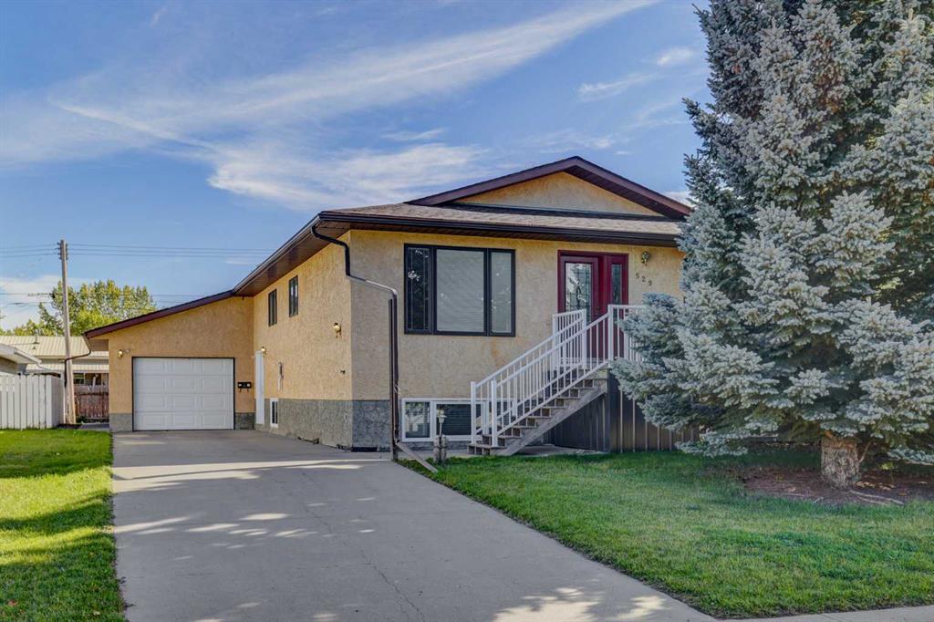 This well maintained split-level home offers a comfortable and spacious living experience, ideally located close to the Vulcan Golf Course Clubhouse, Vulcan Lions Swimming Pool, Park, and within walking distance to local schools. The main level features the primary bedroom with a private three-piece ensuite bathroom, a second bedroom and main bathroom with a relaxing jetted tub. Bright and open living room. Functional kitchen and dining area, perfect for family meals. There is also the conveniently located laundry room and a storage room for added space. The fully developed basement has two additional spacious bedrooms, a three-piece bathroom, and large family room with a wet bar, perfect for entertaining. The dart board, bar fridge, and wall unit are all included in the sale. Utility room housing a high-efficiency furnace and a boiler system for in-floor heating in both the basement and garage. There is also extra storage room for seasonal items. The entry level has direct access to the attached heated double-car garage, with the added convenience of front driveway and rear alley access. This family home also has central air conditioning for year-round comfort, and a covered deck accessible from the kitchen area, offering a great outdoor space for dining or relaxing. Fully landscaped yard, ideal for enjoying the beautiful Alberta weather. This home is a fantastic opportunity for families or those looking for extra space in a well-located and highly desirable neighbourhood. Don't miss your chance to view this move-in-ready property!