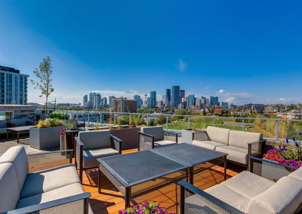 Welcome to Radius by Bucci, located in the heart of Bridgeland! This stylish 2-bedroom, 2-bathroom condo offers a modern open-concept layout with SOUTH FACING floor-to-ceiling windows. The kitchen is equipped with premium stainless steel appliances, including a gas cooktop, sleek quartz countertops, under cabinet lighting, and a breakfast bar ideal for casual meals or entertaining. The primary bedroom includes a walk-thru closet to the luxurious 3-piece ensuite with an oversized shower and toe kick vanity lighting, perfect for relaxation after a busy day. The 2nd bedroom is versatile with a built-in Murphy bed, great for working from home or guest accommodations. Additional conveniences include in-suite laundry, a private balcony, a separate storage unit down the hall, and underground TITLED parking. This concrete building is LEED Platinum certified making it an environmentally friendly option with reasonable operating expenses and suburb soundproofing. You'll also enjoy a wealth of amenities including concierge services, two gyms (one is on the 3rd floor!), a spin studio, a yoga studio, a dog wash, a car wash, and bike storage. The expansive rooftop terrace features stunning views of the city and mountains, along with BBQs, seating areas, fireplaces, and gardens. Nearby, you'll find popular local eateries such as OEB, UNA, Sushi Bar Zipang, Phil & Sebastian, Shiki Menya, Mari Bakery, Made by Marcus, Village Ice Cream, Bridgeland Market, and so much more. Floor plans and a 3D tour are readily available, providing a glimpse into this chic condo!
