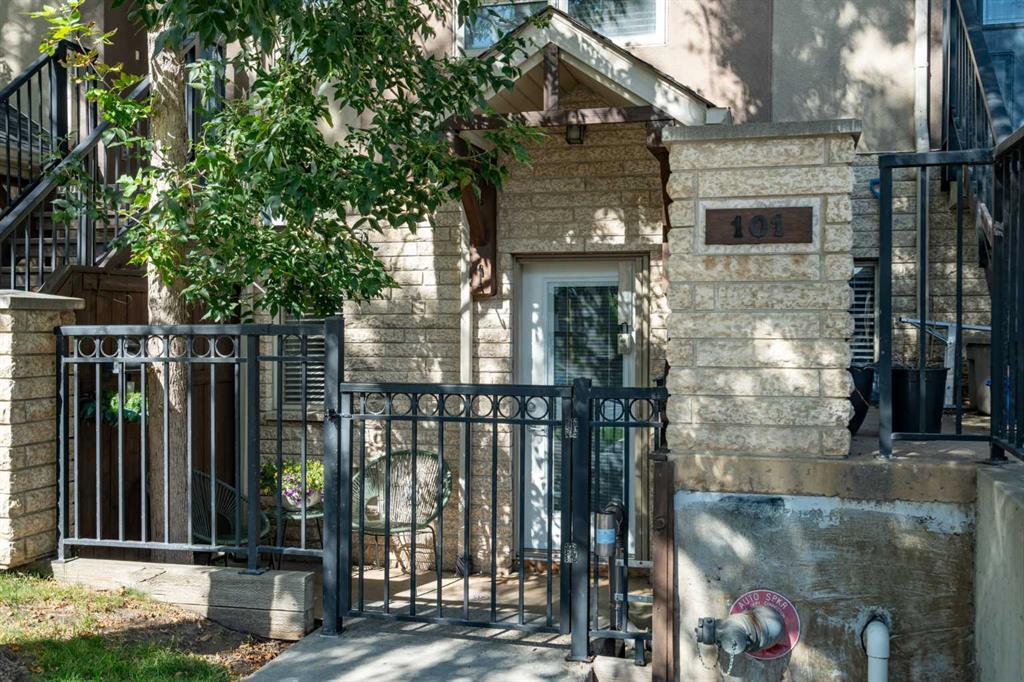 Welcome to this fabulous END unit two-bedroom townhome with over 1300 square feet of total living space in the dynamic community of Marda Loop! Ideally situated on a quiet tree-lined street, it is only steps from all the action and convenience of everything the area offers, from grocery, retail, pubs, restaurants, beauty, parks, and schools. Upon entering your front foyer, you will find a spacious open-concept main floor with coffered ceilings, hardwood floors and a gas fireplace. The kitchen is open to the living and dining space, featuring stainless steel appliances, espresso cabinetry, granite counters, a tile backsplash, a large breakfast bar and ample storage. Off the kitchen, you will find a good-sized mudroom/storage/pantry area leading out to your titled heated underground parking stall. The upper level features two large bedrooms, including the Primary suite with dual closets, a five-piece ensuite with a soaker tub & access to a patio overlooking the courtyard. The second bedroom with ample closet space & 3-piece bath complete the upper floor. Enjoy coffee on your private fenced front patio or from your second patio off the primary bedroom overlooking the courtyard. Additional features include All-new carpet and fresh paint, a new front door, a new pantry door and a new stacked washer and dryer. The Marda Loop Main Streets Project will bring a whole new look to the Marda Loop business district when it is completed in late 2024/2025, making this vibrant community even more so! Note: this unit is partially below grade. All you need is the key!