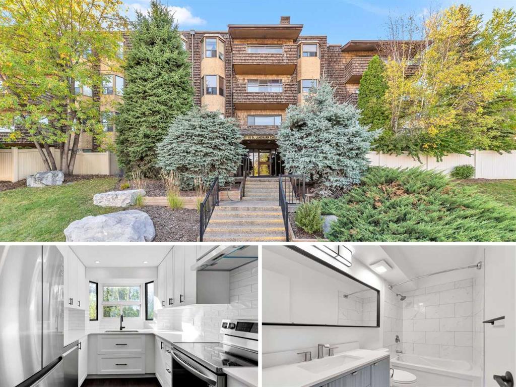 Welcome to Landmark Estates!! AMAZING location and recently fully renovated from top to bottom (2023), huge 2 bedroom, 1.5 bath condo with private west facing balcony. As soon as you walk through the front door, you'll be amazed at the bright, open concept and updated feel of the home. It has a rare, spacious dining room area, large living room with a wall of windows, chef's kitchen with brand new everything including stainless steel LG appliances, quartz countertops and soft closing cabinetry throughout. Both bedrooms are oversized with the primary bedroom having a large bay window, walk through closet and private 2 piece ensuite. The 4 piece main bath is modern, bright and has a deep soaker tub to relax in after a long day. Enjoy your morning coffee on the large, west facing deck where you will be surrounded by mature trees and can listen to the birds sing. This is an Adults Only Building, This feels like a true oasis in the city. In addition to all of this, this Adults Only Building has free to use laundry rooms on all levels, a games room on the second level and this home comes with an underground parking stall that is conveniently located close to the elevator and a storage locker for all your extra treasures. Located in the heart of Varsity, this home is within walking distance or a quick drive to U of C, Foothills & Children's hospital, Market Mall, Bowmont Park, shopping, grocery, bike trails, schools and public transit. Amazing homes like this do not come on the market often. Book your showing today!