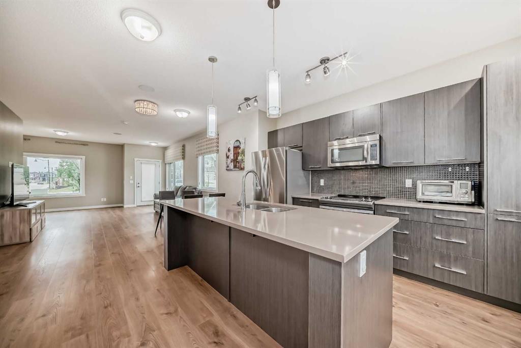 EXCLUSIVE CORNER TOWNHOME IN SHERWOOD NW CALGARY Welcome to an exquisite and rare corner townhome in the highly sought-after Sherwood community of NW Calgary. Boasting about 1,610 square feet (Upper, Main – Above Grade 1,388 sqft) and (Lower Floor – Below Grade 224 sqft) of sophisticated living space, this stunning residence combines luxury with convenience. Located steps from the community park, pond, and the vibrant amenities of Sage Hill Crossing, this townhome offers an unparalleled living experience. Step inside this meticulously maintained home and be captivated by the open-concept design. The main level features a versatile front entry flex room, perfect for a home office, mudroom, or fitness area. The spacious living area showcases a sleek gourmet kitchen, complete with stainless steel appliances, quartz countertops, 9-foot ceilings, and abundant natural light from additional windows—a true entertainer’s delight. Upstairs, you’ll find three generously sized bedrooms, including a luxurious primary suite with a private three-piece ensuite and a large walk-in closet. The corner lot location ensures extra windows throughout the home, filling every room with natural light and offering picturesque views of the adjacent park, pond, and beautifully developed green spaces. With a double attached garage and a prime location near public transit and major routes, this townhome is also just a short walk from the shops and restaurants at Sage Hill Crossing. Experience the perfect blend of elegance and convenience in this exceptional Sherwood residence—your dream home awaits. Directions: This exceptional corner unit is ideally situated at the edge of the lake, offering serene views and privacy.