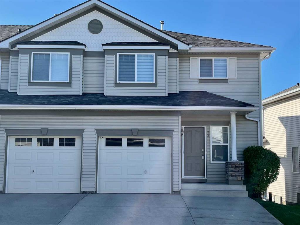 This stunning totally renovated 3 bedrooms 2.5 baths home boast over 1700 square feet of developed living space, This home is filled with natural lights from the sunny south exposure deck. Once enter the unit you will find a welcoming foyer. The newly renovated laminate floors guide you into the living room with cozy fireplace. A beautiful oak kitchen with island that will become the heart of your home. The living room and dining room flow together making it perfect for large gatherings with friends. New kitchen countertops and undermount sink installed 2 years ago. Upstairs boast 3 generous size bedroom and 2 bathrooms which includes the master bedroom with a spacious walk-in closet and 4 piece ensuite. The walk-out basement is fully renovated with a huge recreation room with an Murphy bed for guests. The laundry room has a sink for convenience and plenty of storage area. This home comes with a newly installed air conditioner, newer furnace and new window blinds. This complex is ideally located just steps to the Tuscany LRT station, walking distance to great amenities in Royal Oak and Rocky Ridge, YMCA, Wallmart, and direct access to walking paths, playgrounds, ponds as well as tennis and valley ball courts. This home is in mint condition, do not miss it.