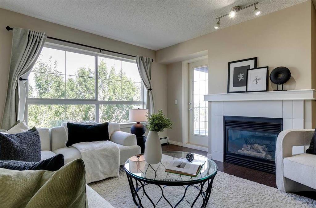 Welcome to your new home, perfect for young professionals, couples, those looking to downsize, or investors. This stunning top-floor end unit is just a short stroll from Mount Royal University, convenient transit links, and a 12-minute drive to downtown. This spacious 2-bedroom, 2-bathroom plus den home features an open-concept design, perfect for modern living. The kitchen boasts ample space, ideal for culinary enthusiasts, while the cozy living room is enhanced by a charming gas fireplace. Large windows flood the space with natural light, and the expansive covered balcony offers a perfect retreat. The master bedroom is a true sanctuary, complete with an ensuite bathroom and a generous walk-in closet. The second bedroom is also spacious, making it perfect for guests or a home office. Additional perks include in-suite laundry, two titled parking stalls, and an assigned storage locker. Residents enjoy access to a fitness center, car wash bay, and a welcoming lounge party area, with visitor parking available for guests. Don’t miss the opportunity to make this exceptional home yours!