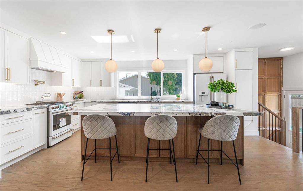 This elegant 3+2 bedroom custom bungalow is nestled in the Lake Community of Lake Bonavista. Located on a corner lot with desirable South and West backyard and Double detached garage. The main floor plan accommodates 3 bedrooms, living room, dining, kitchen, 2 full bathrooms and a walk in pantry. The spectacular kitchen boasts high-end Cafe appliance package that includes gas range, refrigerator, dishwasher, microwave and stunning designer granite. The living room features a modern electric fireplace with oak shelves and custom built-in. When you go out the side door you step down to the West backyard private patio, with beautiful large trees and access to the garage. The luxurious primary suite features a large front window and French doors leading to a walk-in closet and a 4 piece ensuite bathroom. Basement is fully developed and boasts a large family/ recreation with a custom buit in media wall, a cold bar, children's play nook, the laundry room of your dreams, full bathroom and 2 bedrooms. As you can see this home has been very tastefully upgraded with stunning design features. Some of the items you cant see that have also been upgraded are; Furnace, Hot water tank, windows and doors, all plumbing and electrical, exterior Hardy board, and all drywall, exterior deck, concrete and sod. Lake Bonavista is one of the best lake communities in the city, Walking distance to the plethora of parks and schools and the lake is down the street! This home is not like anything else you have seen, so you must come check it out!