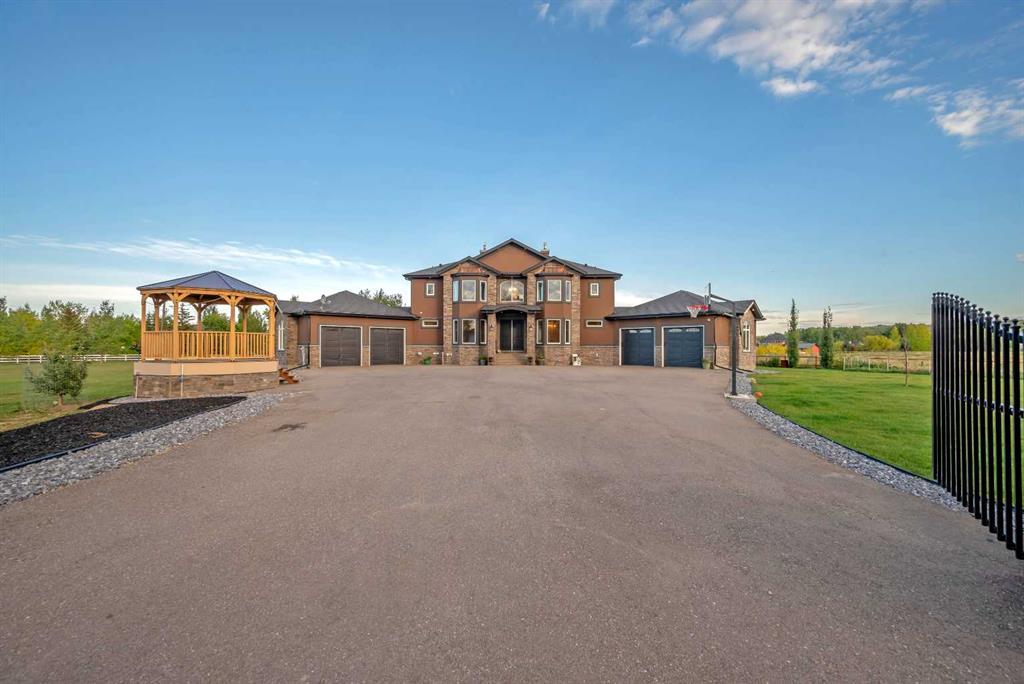Welcome to this BEAUTIFUL 2 Storey Acreage House with a little over 6500 square feet of livable space. The charming curb appeal will capture your heart at first glance. As soon as you walk into the house, you are greeted with a very bright and open layout concept. The Main Floor has an open concept main kitchen and Spice Kitchen. The high and vaulted ceilings give an incredible open feeling to the entire house, there is a three-way fireplace, formal dining room, den, one bed room with full attached bathroom, a beautiful sunroom that opens into a southside concrete patio. Upper Floor has three spacious bedrooms with their own ensuite bathrooms, bonus room with open deck and a master bedroom with ensuite, jetted tub, fire place and walk-in closet. A fully developed basement with one more bed room with full attached bathroom, steam room, gym, separate are with bar and media room/library. Four oversized garages with two heated and integrated sound system with speakers throughout. You can enjoy country living and City living both at the same time at this fully developed two storey house. There are three premiere golf courses just only a few minutes away, three minutes from City limits, five minutes from Calgary South Campus Hospital and 10 minutes to Okotoks. This immaculate house is located across from a premiere community Artesia sub-division of Heritage Pointe (Community of the Year).