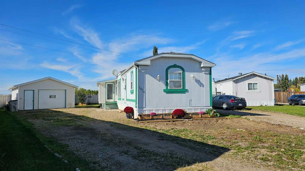 Located in the desirable Stardust Village and close to Wainwright Golf Course, this 3 bedroom mobile home has everything you are looking for and more! The spacious front porch is perfect for getting out of the cold and has plenty of space for all your outerwear and seasonal items. A bright, sunny kitchen featuring double skylights and plenty of cabinets offer just the right amount of storage for all your culinary needs. The open-concept living room with large vinyl windows and additional built-in cabinetry creates a warm, inviting place to relax, unwind or entertain your friends. 2 additional bedrooms and a 4 piece bathroom complete the front portion of this mobile home. The sizable primary bedroom offers a 4 piece ensuite bathroom and walk-in closet/mechanical room. This home is all ready for hot summer days with Central A/C and ceiling fans. New roof shingles installed in July include transferable warranty to new owner. This irregular sized lot is partially fenced along the back and includes a garden shed for all your outside storage needs. The 18 x 26 detached garage is insulated, heated (and wired 220V) for parking your vehicle out of the weather or a great space for a workshop. Deep driveway offers additional parking for your guests as well. Priced below tax assessed value, this home won't last long!! Book your showing today!