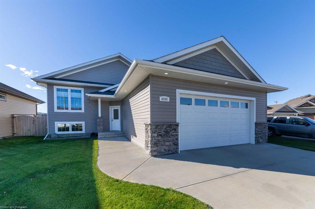 Welcome to 4205 40 Street Close, a beautifully designed bi-level home nestled in a serene cul-de-sac in Lloydminster, Saskatchewan. This home offers an open-concept layout with vaulted ceilings, perfect for comfortable living and entertaining. The spacious kitchen features a large island, ideal for meal prep or casual dining. Step outside to enjoy the fully fenced, expansive yard, offering plenty of room for outdoor activities and relaxation. The main floor boasts two generous bedrooms, including a stunning primary bedroom ensuite. The ensuite is your private retreat, with double sinks, a luxurious corner tub, and a walk-in shower equipped with two shower heads—perfect for unwinding after a long day. The basement is a blank canvas, ready for the new owners to transform it into the perfect space to suit their needs. Lastly the oversized 22x25sqft double attached garage. This home offers a perfect blend of comfort and potential. Don't miss your chance to make it your own!
