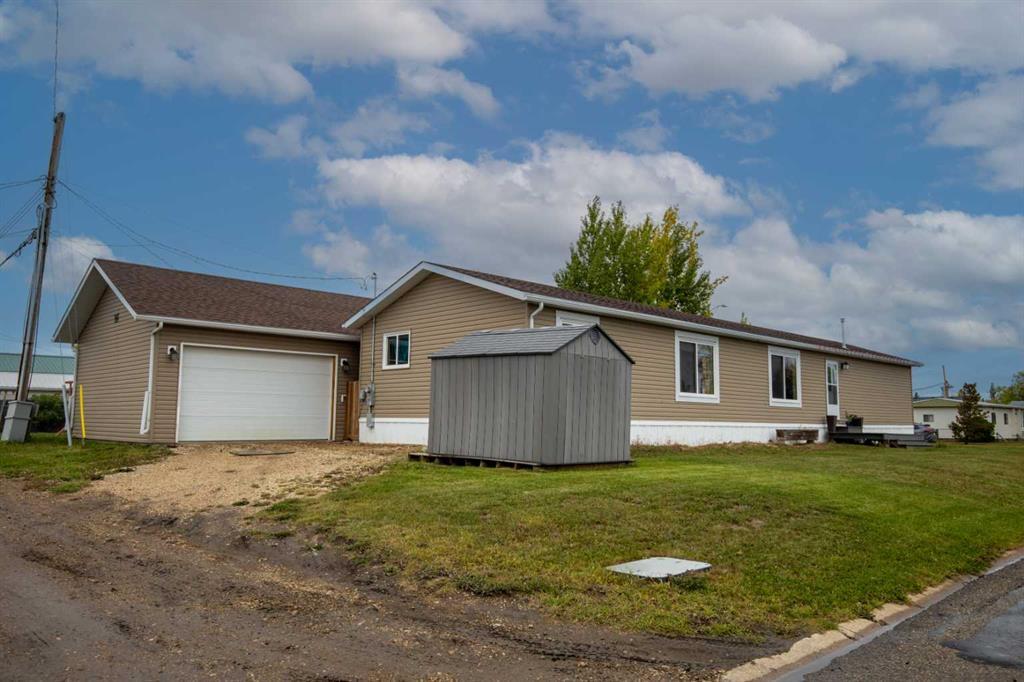 Discover this beautifully maintained modular home in Wembley, complete with a spacious detached garage on a desirable corner lot. Step inside to a bright, roomy living area that features a breakfast bar in the kitchen. The primary suite boasts a walk-in closet and a full ensuite, while two additional bedrooms share a well-appointed full bathroom. From the back door, you’ll find a large deck perfect for enjoying the expansive backyard. The impressive 33’ x 21’ finished and heated garage features a cathedral ceiling, providing even more space for your needs. With only one neighbor, this corner lot offers both privacy and room to breathe. Don’t miss out on this wonderful home with endless potential! Contact your REALTOR® today to schedule your tour!