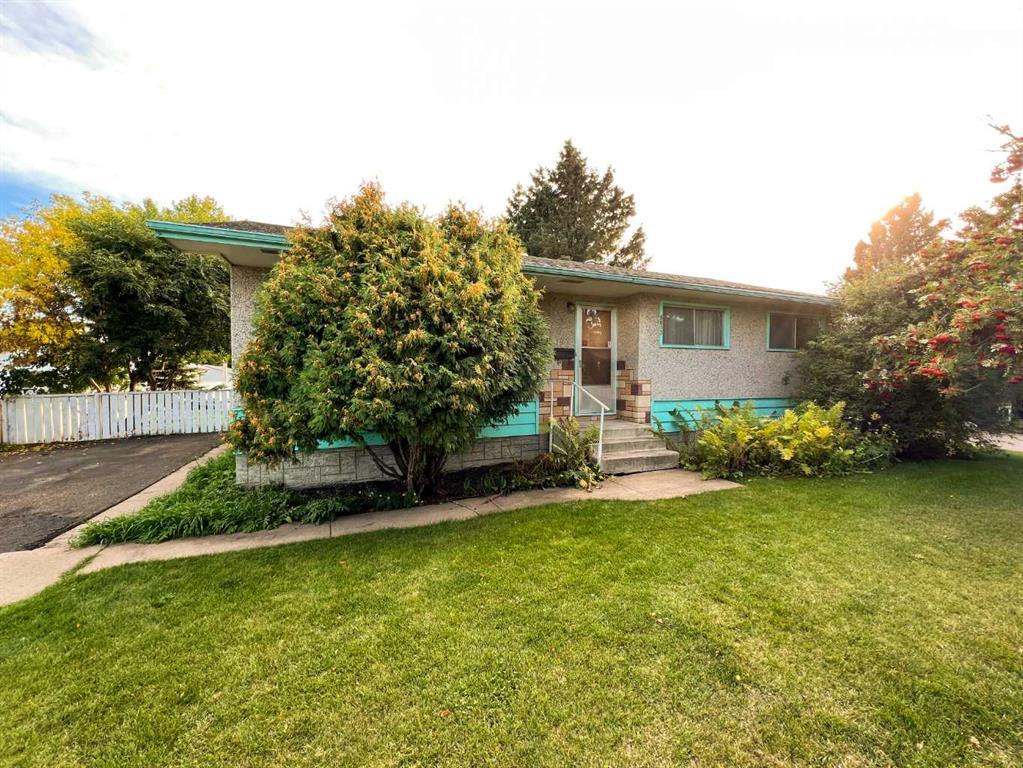 Nestled in a peaceful, mature neighborhood of Lacombe, this well-maintained bungalow is ideally located near schools, and just minutes from downtown, Lacombe golf course, and Highway 2. The home sits on an expansive 67' x 120' lot, offering privacy and beauty with its many mature trees, and paved driveway. The long term owners resided here since 1972, and kept their home maintained throughout their time. Step inside to find a bright and inviting living room, where large windows frame stunning views of the treed front yard and greenspace across the street. The open layout offers plenty of room for all your furnishings. The kitchen, complete with ample counter space, fridge (2022), stove, and dishwasher, provides a lovely view of the serene backyard. Down the hall, you'll find a spacious built-in closet, a 4-piece bathroom, two generously sized bedrooms, and a primary bedroom. The lower level presents exciting potential, featuring a partially finished basement with room for up to 3 oversized bedrooms, allowing for your personal touch to complete the space. The large laundry and mechanical room is also located downstairs, offering plenty of storage and utility space. A detached oversized heated garage and additional paved parking pad add convenience to this charming property. This garage was built in 1999 and has plenty of space for the safe storage of your vehicles and other belongings. The shingles were replaced on both the house and garage within the past 5 years. Additional storage space is available in the 10 x 10 shed which is conveniently located beside the garage. There is so much potential, an ideal location, ample space, and great opportunity—ready for new owners to enjoy.