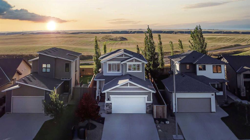 This residence exemplifies precision and intentional design, seamlessly blending contemporary living with functionality. As you step onto the main floor, open-concept dining and living areas welcome you, meticulously arranged to balance comfort and style. A use of light greys and dark wood tones creates an inviting atmosphere that reflects discerning taste. Expansive windows and glass patio doors invite natural light to illuminate the interiors while providing picturesque views of the backyard, beautifully connecting indoor and outdoor spaces. The kitchen serves as a striking focal point, featuring a generous island perfect for gatherings, light stone countertops and floor-to-ceiling cabinetry. Custom details, such as a gas fireplace and built-in shelving, add warmth and character, making it an ideal space for casual family meals or more formal entertaining. Venturing outside, the south-facing backyard unfolds, bordered by mature trees that offer a natural screen for privacy. The outdoor kitchen and custom built-in seating create an inviting setting for outdoor entertaining, allowing for smooth transitions from indoor dining to enjoying the fresh air. Moving to the second level, the primary suite captivates with its vaulted ceilings and spacious walk-in closet. The 5-piece ensuite provides a private retreat, showcasing dual sinks, beautiful stone counters, a soaking tub, and a separate shower—perfect for relaxation after a long day. Two additional well-sized bedrooms offer flexibility and comfort, while a modern 4-piece bathroom serves family and guests alike. The fully developed basement is designed for entertainment, featuring a fully equipped wet bar that includes a bar fridge, butcher block countertop, stainless steel sink, and open shelving. Acid-stained concrete flooring introduces an industrial flair, while the beer tap sets the scene for lively gatherings.