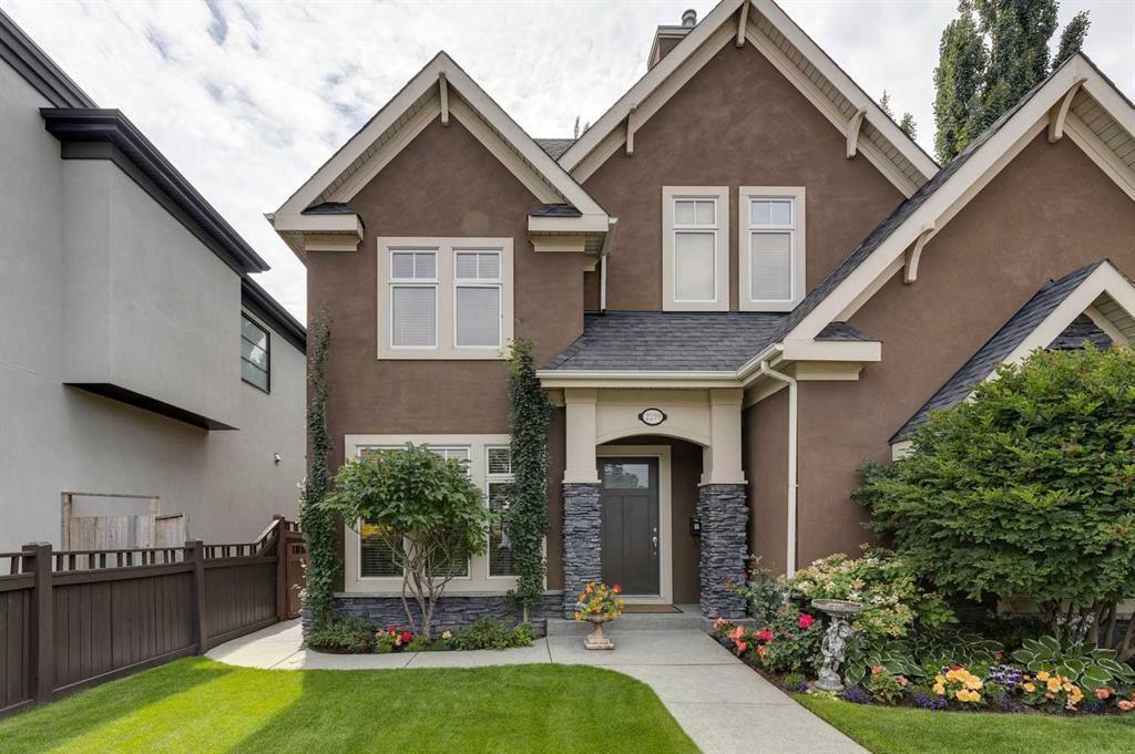 Welcome to this stunning semi-detached home backing onto a greenspace & Bow River Pathway with over 3000 square feet of developed living space. Owned by a designer, this home is impressive with gleaming MAPLE hardwood floors on the main floor as well as a GOURMET kitchen featuring premium glazed MAPLE cabinets, GRANITE countertops, TILE backsplash, GAS cooktop & fireplace. The fireplace is a double sided, wood burning with gas log lighter & is a gorgeous feature in the living room. The living room has french doors which open up to an oasis. The low maintenance, south backyard boasts an aggregate patio, lush plants, flowers & water fountain. The main floor also features a spacious office & charming 2 piece bathroom w. granite countertops and MAPLE cabinets. Upstairs you will find 3 large bedrooms, 2 baths & laundry area. The master suite features a huge walk-in closet & 5 piece ensuite with stone countertops, MAPLE cabinets, double vanity, soaker tub & fully tiled, glass enclosed STEAM SHOWER. The 4 piece main bathroom is lovely & includes TILE floor & MAPLE cabinets. The basement is developed and has plenty of room for entertaining or play area. BONUSES include: BRAND NEW carpet upstairs & basement, Central A/C, BOSE sound system on all 3 levels & outside, infloor heat in basement & master bath, TRIPLE glazed windows, upgraded light fixtures throughout, Vacuflo system & attachments, heating is newer boiler system (inspected Sept 2024) for water so never run out of hot water, water softener system, solid wood 8 ft doors throughout home, basement freezer & beverage fridge & 1 house away from tot lot & park. Backing onto a greenspace, the BOW RIVER pathway is directly out your back door and is less than 10 min bike to Peace Bridge, 13 minute ride to Angel's Cafe on Bow River & short bike to Edworthy Park or downtown. Walking distance to Kensington Village & 19th Street shops & services. A luxurious home ideal for anyone wanting to live in the heart of the city.