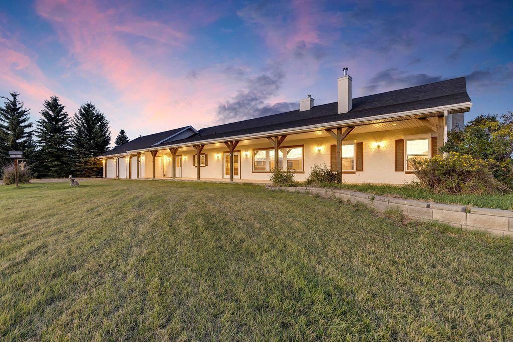 Welcome to this stunning 5-bedroom, 3.5-bathroom walk-out bungalow set on a peaceful 5-acre lot surrounded by mature trees and offering an impressive 5,248.50 sqft of fully developed living space. This home features a triple oversized heated garage, perfect for your vehicles and storage needs. Step inside and be greeted by the warmth of an interior stone feature wall in the living room, anchored by one of two wood-burning fireplaces. The open-concept design creates a seamless flow from the oversized kitchen and dining areas to the spacious living room, ideal for both family living and entertaining. From the front porch, kitchen windows, or the primary bedroom, soak in the breathtaking mountain views, or relax on the oversized back deck for an even more serene experience. The fully developed basement is a dream, with in-floor heating throughout and rough-ins for a secondary kitchenette, offering endless possibilities for additional living space or a potential secondary suite would be subject to approval and permitting by the city/municipality. With two furnaces and two air conditioning units, comfort is assured in every season. The new roof, installed in 2022, ensures peace of mind for years to come. For those seeking extra security, the property is equipped with a security system that is ready for hookup. Whether you're looking for a peaceful retreat or a large family home, this property offers the perfect balance of nature and modern living. Don't miss your opportunity to make this incredible property your own! Contact us today for a private viewing.