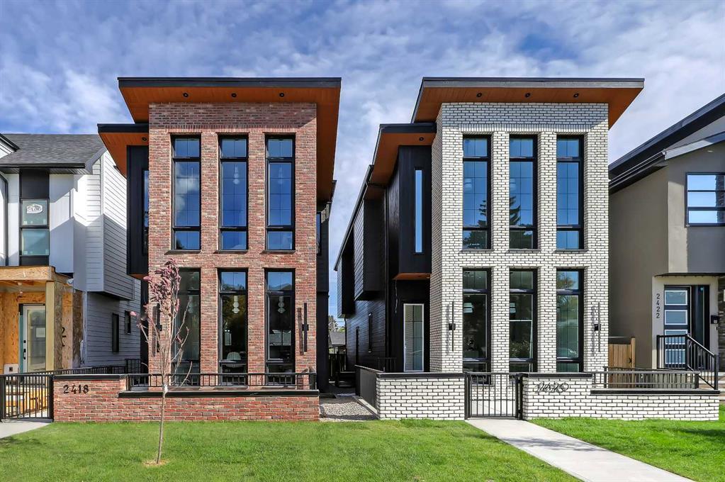 The timeless NEW YORK-INSPIRED BRICK HOME you’ve been waiting for! This brand-new DETACHED INFILL from Moon Homes has no detail overlooked across 2,690 sq ft of developed living space. Highlights include motion-activated LED lighting, bright oversized windows, panel moulding across all floors, and a smart home mobile app-controlled lights and heating system! Killarney is the ideal location for young families who want to be close to parks, schools, & local amenities, including Inglewood Pizza, Luke’s Drug Mart, & Franco’s Café, plus within walking distance to the LRT. The neighbourhood is a short drive to the downtown core, easily accessible along Bow Trail or 17 Ave, & a quick walk to the Killarney Aquatic Centre & community garden. Each inch of the home is uniquely designed to utilize the space expertly while adding the modern, upscale touches you expect. The main floor has engineered oak hardwood floors and 10-ft ceilings, a spacious foyer, and an upscale dedicated dining space w/ ceiling-height panelled windows. The show-stopping chef-inspired kitchen is welcoming and spacious, w/ a complete JENN-AIR appliance package, a pot filler, ceiling-height shaker-style cabinetry w/ recessed decorative oak niches w/ built-in LED lighting, and an oversized island w/ dual waterfall edges! Complementing the home’s timeless feel is the large living room w/ gas fireplace showcasing a ceiling-height brick surround w/ black built-in cabinetry on either side. Step outside to the back deck through a dual sliding glass patio door for the ultimate entertainment experience. The contemporary powder room is nicely tucked away off the kitchen and features a soaring ceiling, motion-activated LED lighting, designer pendant light, vessel sink, and floating quartz countertop! Custom designer touches continue up the staircase w/ glass wall and panel moulding and into the gorgeous primary suite. The suite features oversized ceiling-height panelled windows, pendant lights, a seating area, a massive walk-in closet w/ extensive built-in millwork and LED lighting, and a spa-like 5-pc ensuite with built-in bench, soaker tub, and double vanity w/ oak cabinetry. The two secondary bedrooms feature large walk-in closets and share the main 4-pc bathroom w/ quartz vanity and tub/shower combo w/ full-height tile surround. The upper floor also has a convenient laundry room w/ a sink, tile backsplash, cabinetry, and folding counter. The living space continues into the basement w/ rec room w/ built-in media centre, full wet bar w/ beverage fridge, sink, full-height tile backsplash, and open display shelving, plus a dedicated gym space, a fourth bedroom, and a 4-pc bath – perfect for guests or older kids. Outside, enjoy warm summer days on the large front concrete patio, or entertain into the evenings out back on the deck w/ a gas line for a BBQ. However you decide to use the space, there’s one thing for sure – this New York-inspired brownstone will quickly be a house you’ll love to call home!