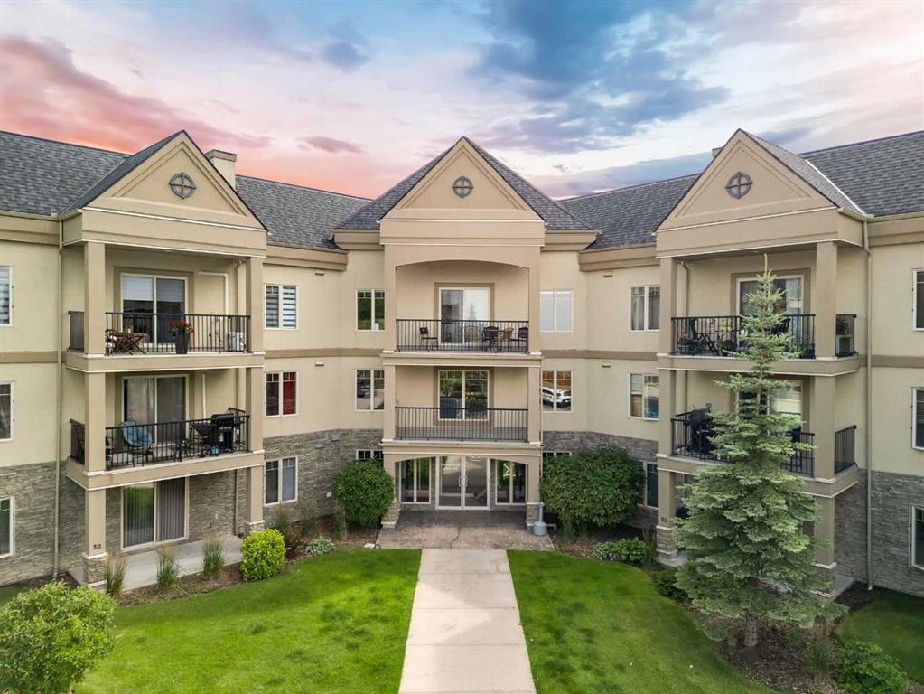 Welcome to this immaculate AIR-CONDITIONED in the sought after SILHOUETTE OF CRANSTON Adult living (18+) condo that perfectly blends comfort and modern living. As you enter, you are greeted by a bright and sunny atmosphere, thanks to large windows that fill the space with natural light. The primary bedroom is a serene retreat featuring a spacious walkthrough closet and a luxurious four-piece ensuite bathroom, providing both convenience and privacy. The second bedroom is ideal for guests or a home office. The unit also boasts a flex space that can be tailored to your needs—be it a cozy reading nook, a home office, or a play area. A well-equipped IN-SUITE LAUNDRY adds to the convenience of daily living. Step outside onto the large balcony, perfect for enjoying morning coffee or evening sunsets. The kitchen has newer appliances, a pantry , and plenty of cupboard space ensuring a functional and efficient lifestyle. The Building amenities are plentiful, including an underground titled parking stall, separate storage , a CAR WASH , and a large GYM for fitness enthusiasts. Unwind in the HOT TUB or SAUNA after a long day, or take your furry friend to the DOG PARK for some fresh air. For entertainment, enjoy the MOVIE THEATRE room or challenge friends in the GAMES ROOM. This immaculate condo offers a lifestyle of luxury, convenience, and community—truly a place to call home! ONE OF THE BEST KEPT BUILDINGS YOU WILL SEE - WELL MANAGED... WITH AN AMAZING COMMUNITY OF PEOPLE!!