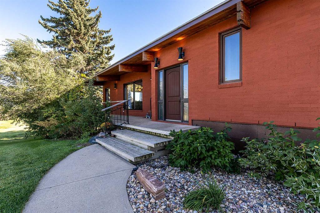 Discover this beautiful 6 bedroom, 3 bathroom walk-out brick bungalow, perfectly set on 11 acres of picturesque countryside. Experience breathtaking panoramic views of lush fields and the distant Cypress Hills from the expansive wrap-around deck. Step inside to find a welcoming open-concept main floor featuring a vaulted wood-planked ceiling with exposed beams, anchored by a floor to ceiling brick fireplace in the spacious living room. Large windows flood the space with natural light, offering endless views and a peaceful atmosphere. The kitchen is well laid out and features plenty of counter space and cabinets, direct access to the wrap around deck, and a sunny window over the sink showcasing the natural beauty outside. Enjoy large family meals in the adjoining dining room or step out on the deck for outdoor dining. The primary bedroom is a true retreat with french doors leading to a private side deck, a walk-in closet, and a three piece ensuite. Two additional bedrooms and another three piece bathroom complete the main floor. The laundry room is conveniently located off the mudroom which connects to the breezeway and the attached double heated garage. Downstairs, the walk-out basement is a dream for families or guests, featuring a great sized family room with a second brick fireplace; perfect for movie and game nights! Warm summer evening hot dog roasts and s'more nights are a breeze here, with direct access to the fire pit and backyard from the walk-out basement. The games room adjacent to the family room is large enough for a pool table or could be transformed into a home theatre with it's own attached bar, including a second stove - super handy when preparing large holiday meals. With three more bedrooms, including one oversized room with space for a sitting area, and a full four piece bath, this home offers a space for everyone. The property includes a second double detached garage with 10-foot ceilings, 220 power and fully insulated, as well as a third single detached garage. The small barn, multiple fenced paddocks, and two storage sheds offer endless possibilities for animals, gardening, or outdoor projects. Kids will love exploring the trees and riding ATVs around this wonderful property. Additional features include a well with shed to protect it from the elements; a new pump was installed in 2009, and it auto fills the cistern, and a 4' irrigation line for watering the front 1 acre yard space (water from SMRID). Updates include new carpet on the main floor (2021), dishwasher(2021), membrane roof(2008), air conditioner(2007), furnace(2008), and septic tank (2016). The A2 Agriculture zoning for this property allows for some development opportunities not found in all acreages. Located just minutes from town, this home combines the best of country living with modern conveniences making it the perfect place to raise a family and enjoy the serene beauty of nature!