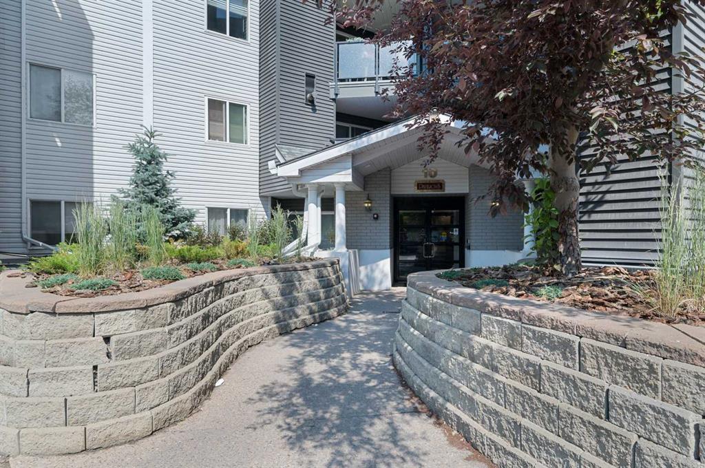 Discover this modern top-floor condo with vaulted ceilings in the vibrant community of Signal Hill. This open-concept unit features luxury vinyl plank floors. The large window in the vault and patio door allow the natural sunlight to flood the main living area. A spacious kitchen with white cabinets, and a mosaic backsplash. The living room boasts a tiled gas fireplace and sliding doors that open onto a private patio with a gas hookup and a storage locker. The master bedroom includes a built-in walk-in closet and a 4-piece ensuite bathroom. On the opposite side of the condo, you'll find a second bedroom, in-suite laundry with built-in cabinets, and another 4-piece bathroom. Additional upgrades include 10x16 tiled flooring, 4.5" baseboards, 3.5" window and door casings, decor switches and plugs, modern light fixtures, and a fresh coat of paint. A titled indoor parking stall (#111) is also included with this unit. Located within walking distance to West Hills Shopping Centre and minutes from downtown, this condo is close to private and public schools, golf courses, hospitals, Winsport, and just 20 minutes to Bragg Creek. Some photos have digital staging.