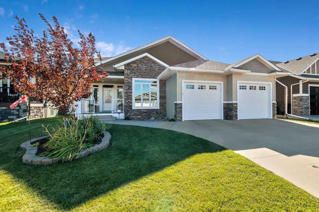 Beautiful luxury Bi-Level located in the newest subdividion "The Highlands" in the growing community of Olds. This home is completely finished ready to just move in and enjoy. As you walk into the entrance, it leads you to the bright 1st bedroom currently used as an office. Walk up the beautiful dark oak hardwood floor stairs to the main level featuring an open concept kitchen/livingroom with maple cupboards with a contrasting large island, corner pantry and dining room with french doors that lead you onto the maintenance free south facing deck. Roll out the remote operated awning to enjoy the shade during the hot summer days. Main floor floor also features a spacious Primary Bedroom with grand 3 piece bathroom, walk-in closet, additional 3rd bedroom and 4 piece bathroom, main floor laundry/mudroom that leads into the double attached garage. Cozy up to the fireplace in the livingroom while watching your favorite TV program during the cold winter months. The Basement is fully developed with 2 more additional large bedrooms, 4 piece bath and a spacious and cozy family room with a fireplace. The in-floor heat in the basement is a great addition to this home for warmth and comfort. Brand New Hot Water on Demand system and In-Floor Heat Boiler Glycol System installed February 14, 2025. This property is beautifully landscaped with an irrigation system to keep your yard looking prestine, ornamental chestnut tree, ornamental crabapple tree and other bushes to beautify this property. If you are looking for a property with Green Renewable Energy, look no further as there are newly installed solar panels which will provide the new buyer with reduced electricity bills through Renewable Energy Credits. Too Many things to list, come see it to believe it!!