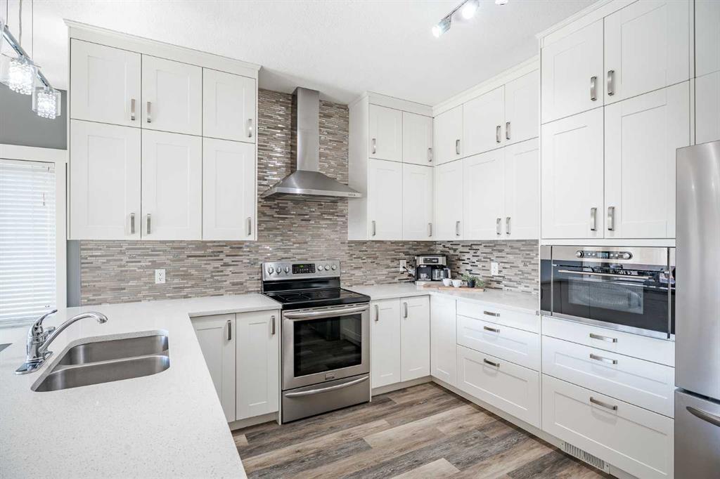 A rare opportunity awaits with this beautifully maintained, fully finished bungalow backing onto the prestigious Woodside Golf Course. Offered by its original owners, this custom-built McKee Home boasts just over 2,900 sq ft of thoughtfully designed living space, blending modern updates with timeless elegance. This exceptional property features 4 bedrooms (2 up, 2 down), plus a versatile gym/craft/home office space, and 3 full bathrooms. Situated on a quiet street in a mature neighborhood, this home offers privacy, tranquility, and beautifully landscaped surroundings. The stunning south-facing backyard is a serene retreat, featuring a cedar deck, relaxing hot tub, and a stamped concrete patio — ideal for morning coffee, or summer evenings spent with friends. The lush landscaping with mature trees and perennials, provides a peaceful setting overlooking the golf course, and if your lucky, some wildlife viewings. The heart of the home is the beautifully updated kitchen, featuring quartz countertops, upgraded appliances, a stylish backsplash, and generous cupboard and counter space. Sleek vinyl plank flooring flows throughout the kitchen and dining area, which opens directly to the deck and hot tub — the perfect spot to unwind while taking in those stunning golf course views. The inviting living room offers a comfortable yet sophisticated space with oversized windows that frame picturesque views. The main floor hosts two bedrooms, including a spacious primary retreat with a walk-in dressing room and a spa-inspired ensuite featuring an oversized tile shower and double sinks. A second bedroom (or home office), a second full bath, a well-designed mudroom with bench and storage, and access to the double attached garage complete this level. The developed, sunshine basement expands your living space with two additional bedrooms, a flexible gym or craft room, laundry room, great storage, and a generous rec/family room — perfect for movie nights, games, or gatherings. The abundance of windows ensures this lower level feels bright and inviting. Recent updates include a newer furnace (2018), shingles (2014), kitchen, main floor carpet & Lvp floor, kitchen appliances, enusite, main floor bath (except toilet and tub), and mud room cabinetry (2017) — ensuring this home is move-in ready and designed for modern living. This location provides quick access to major routes offers effortless connectivity. Nearby amenities, schools, and walking paths add to the home's convenience and appeal. This rare gem combines modern style, exceptional craftsmanship, great neighbors, and a prime golf course location — a truly special place to call home.