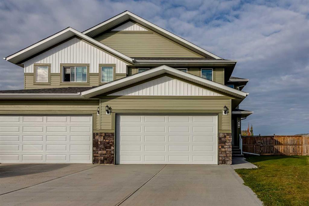Located on a very quiet close sits this upgraded, 2 story executive duplex built by multiple Award Winner…Abbey Platinum Master built! Step inside and notice the open floor plan, upgraded finishings, 2pce bath, spacious living room, and convenient dining area. The kitchen boasts numerous maple cabinets(36inch uppers), lots of prep area,, large island with extended eating bar, walk-in pantry, full tile back splash, crown moldings and stainless-steel appliances. The upper-level hosts 3 good sized bedrooms, a 4-piece bath and laundry area. The primary bedroom has a walk-in closet and a tiled 3 pce bath. The lower level is undeveloped and waits for your creativity. The large west facing deck with gas line over looks the full fenced and landscaped PIE LOT. The attached double garage is drywalled, the home has triple pane Low E-energy star approved windows, added insulation in the attic, 4 inch baseboards, 2 inch Faux wood blinds, home serge protector, HE furnace and HWT and R/I central vacuum.