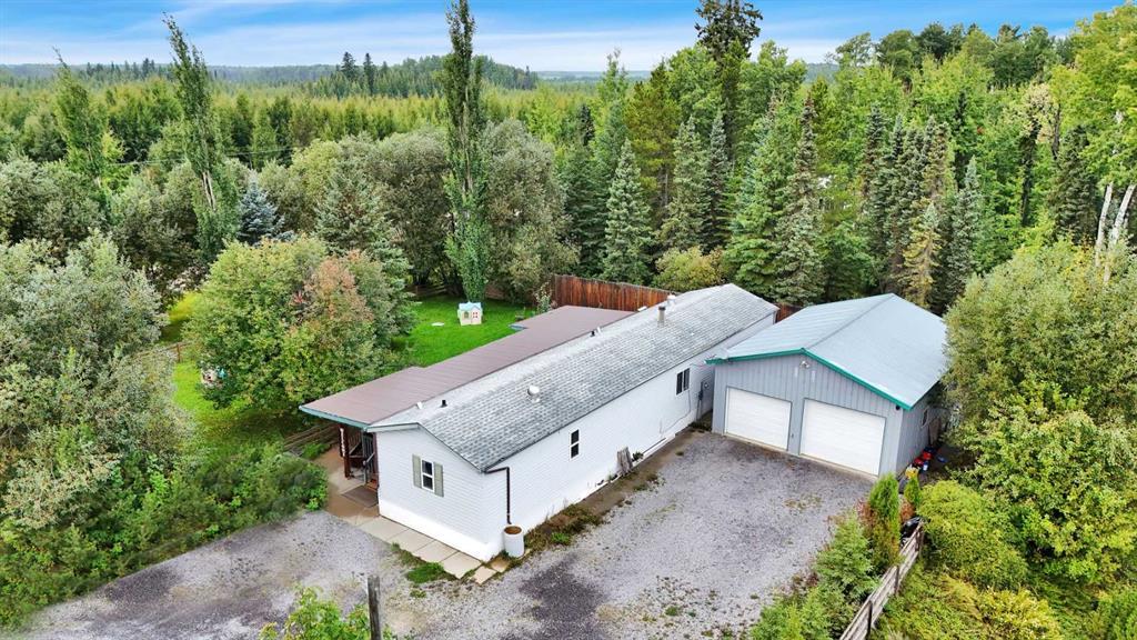 Nestled on 5 acres of land, this charming 1100+ sq. ft. manufactured home offers main-floor living and a welcoming atmosphere. The beautiful covered front porch, complete with a cozy porch swing, invites you to relax, while the fenced front yard provides a safe space for children to play. Inside, you’ll find tasteful updates, including modern laminate flooring and a contemporary kitchen with a stylish tile backsplash. The spacious entryway leads to an office or bedroom, a second bedroom, and a beautiful 4-piece bathroom featuring new lighting and a blue vanity. The large living room flows seamlessly into the open kitchen and dining area, which boasts modern tile and sliding doors that open to the backyard. The kitchen has updated appliances, including a stainless steel fridge. Down the hallway, you’ll find a second entrance to the covered porch, the primary suite with its own 4-piece ensuite, and a convenient main-floor laundry. Completing this impressive property is an oversized garage offering more than 700 sq. ft. of space (22'11 x 30'9), HEATED with 220 wiring, perfect for storage or projects. All set on a generous-sized acreage within minutes of Rocky Mountain House and everything the West Country has to offer. Room to roam!