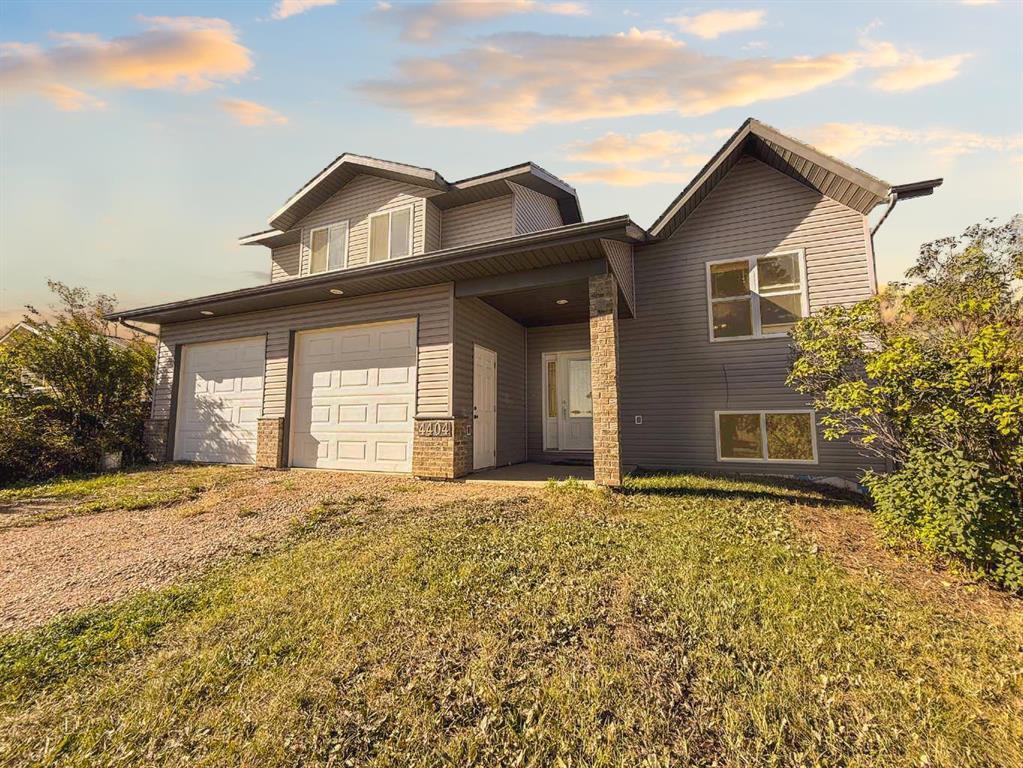 Need more shop space? This may be the home for you! Three bedroom home with two garages and a workshop. Brand new shingles replaced summer 2024. Mature trees on a quiet cul-de-sac adjacent to the Spirit River Regional Academy School. The large drive way leads up to the attached double car garage with 9ft high doors. Inside, you have a coat closet at the wide entrance. Upstairs, vaulted ceilings in the living room and open spaced dining area, kitchen and pantry. Tile counter tops and eat up breakfast bar that seats three. Fridge, electric stove is 2024 and Bosch dishwasher are included. Down the hall, you have main floor laundry (washer/dryer 2021), the main 4pc bathroom w/tub and the primary bedroom with 3pc ensuite w/shower. Upstairs, two more good sized bedrooms with views that over look the football field. Downstairs is undeveloped has 9ft high ceilings and lots of space; ready to be finished to your hearts desire! it is roughed in for a bathroom. Could be developed into an additional bedroom, or two, a large entertainment room, or a home gym? Outside, you have a deck that fits the smoker and the bbq. The yard is fully fenced for fido or the kids. A heated workshop (intention was a grinding room separate from the studio built in 2020, insulated R30) with multiple 220v plugins and own 60amp panel. Also, a detached heated 24x26ft double garage/machine shop w/multiple 220v, 200 amp power (rotary 3 phase converter 600v is available for separate purchase) with cement floor. R50 insulation in attic. This space is currently functioning as a metal working studio. However, the overhead door can be adjusted top fit a large service truck if desired. Talk about TONS of space for work or hobbies! Call to book your private viewing today!