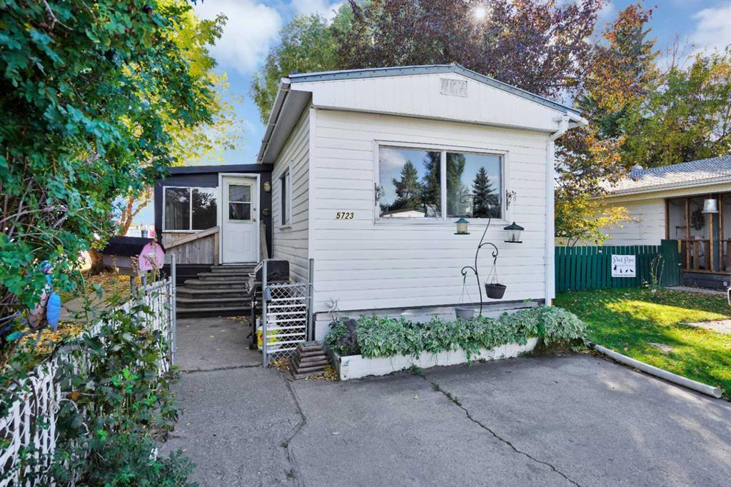 This 2 bedroom starter home is a time capsule of pure 1970's swagger! Think retro wood paneling and delightfully orange shag carpet. Feeling groovy? Embrace the disco-era vibes and let the nostalgia run wild, or pull out that sledgehammer, continue on with the updates and create a space that’s more “you” than avocado green countertops ever could be. Who needs HGTV when you’ve got your very own home-flipping adventure waiting right here? The open kitchen and living room are bright and airy with updated flooring, and the flex space in the addition offers tons of options. Third bedroom? Office space? Family room? The choice is yours! The mature trees in the fully fenced yard create a relaxing and shady space. Off the ally you will find an abundance of parking (room for an RV) and your detached garage. NO LOT RENT here folks you OWN your lot! Overall a great property for you to call your next home!
