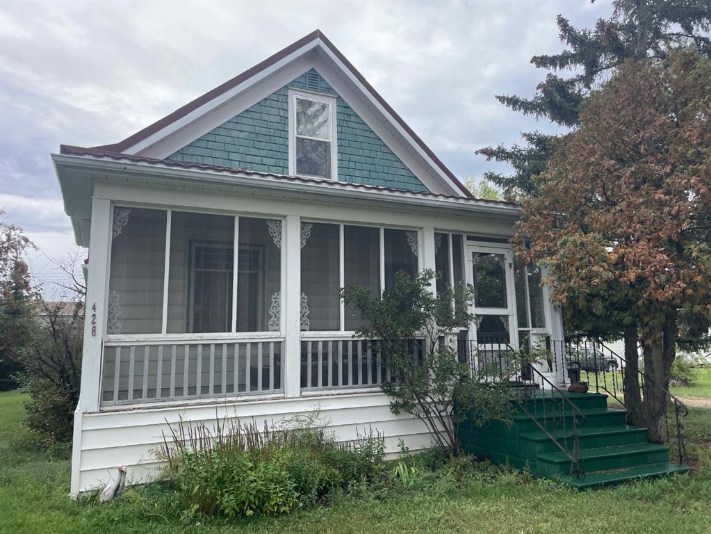 OWN A PIECE OF LOCAL HISTORY! This wonderful property has quite a past! It is said to be a 1903 CPR house, moved to Brooks, sold by the Legion at auction & moved onto a new foundation in Bassano in 1969 by the current long time owner. Charming two-storey character home sits on 5 lots & is like an in town acreage. As you approach, you'll be greeted by a lovely front verandah, ideal for sipping your morning coffee or enjoying a quiet evening. Enter into the spacious back porch with lots of storage & a place to sit down. Sunny eat-in kitchen has natural gas stove, & quality wood cabinets worthy of a restoration. Modern, recently updated bath has oversize shower. Main floor laundry & large pantry area fits your deep freeze & additional fridge with room to spare. L shaped formal living / dining room has classic period windows & offers lots of ways to arrange your furniture. Access to the nostalgic front vernadah is off living room. Generous mainfloor bedroom. Upper level is developed with 2 large bedrooms & 3 pc tub bath. Look closely at the solid wood doors & woodwork; the best features of this age of home are here to be revealed again with some elbow grease! The lathe & plaster walls are all in good condition. Fully developed basement has family room, office, 2 pc bath & lots of storage. The high-end, lifetime guarantee metal tile roof ensures durability and peace of mind for years to come. Detached garage offers a good place to park out of the elements & workspace too. Mature yard has many different fruiting trees and shrubs in addition to landscape trees. Don’t miss the opportunity to own this unique character home; there are few homes of this age in such good condition & worthwhile to renovate. This quality home has been pre-sale inspected. Take the virtual tour & book your private tour.