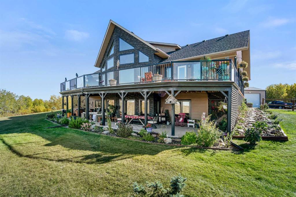 **Welcome to Paradise!** Fall in love with this breathtaking property nestled in the serene river valley next to the historic North Saskatchewan River. Embrace nature and enjoy the peace and quiet on this stunning 12.8-acre acreage. The 1.5-story home boasts over 2,100 square feet of beautifully designed living space above grade, featuring a walkout basement and expansive windows that offer mesmerizing river views from both the main and upper levels. The centerpiece of the living area is a stunning floor-to-ceiling stone fireplace with a custom mantle, creating a warm and inviting atmosphere. The spacious kitchen is a chef’s dream, complete with gorgeous cabinetry, a stylish custom hood fan, and luxurious granite countertops, complemented by a massive walk-through pantry. The primary bedroom is a tranquil retreat with a spa-like ensuite featuring a soaker tub and standalone shower, plus direct access to the deck for morning relaxation. Entertain with ease in the fully finished basement, which includes two additional bedrooms, a den, and a 4-piece bathroom, all leading to a huge covered concrete patio where you can soak in the scenic views of the river valley. You'll also find ample space for your toys, equipment, and vehicles in the 30'x40' heated shop. Additional highlights include covered decks on two sides, a large open deck off the living room, central A/C, triple-pane windows, an ICF foundation, and a new hot water tank. The wood fireplace can be connected to the central heating system for added warmth. Don’t miss this rare opportunity to own a piece of paradise—schedule your private tour today!